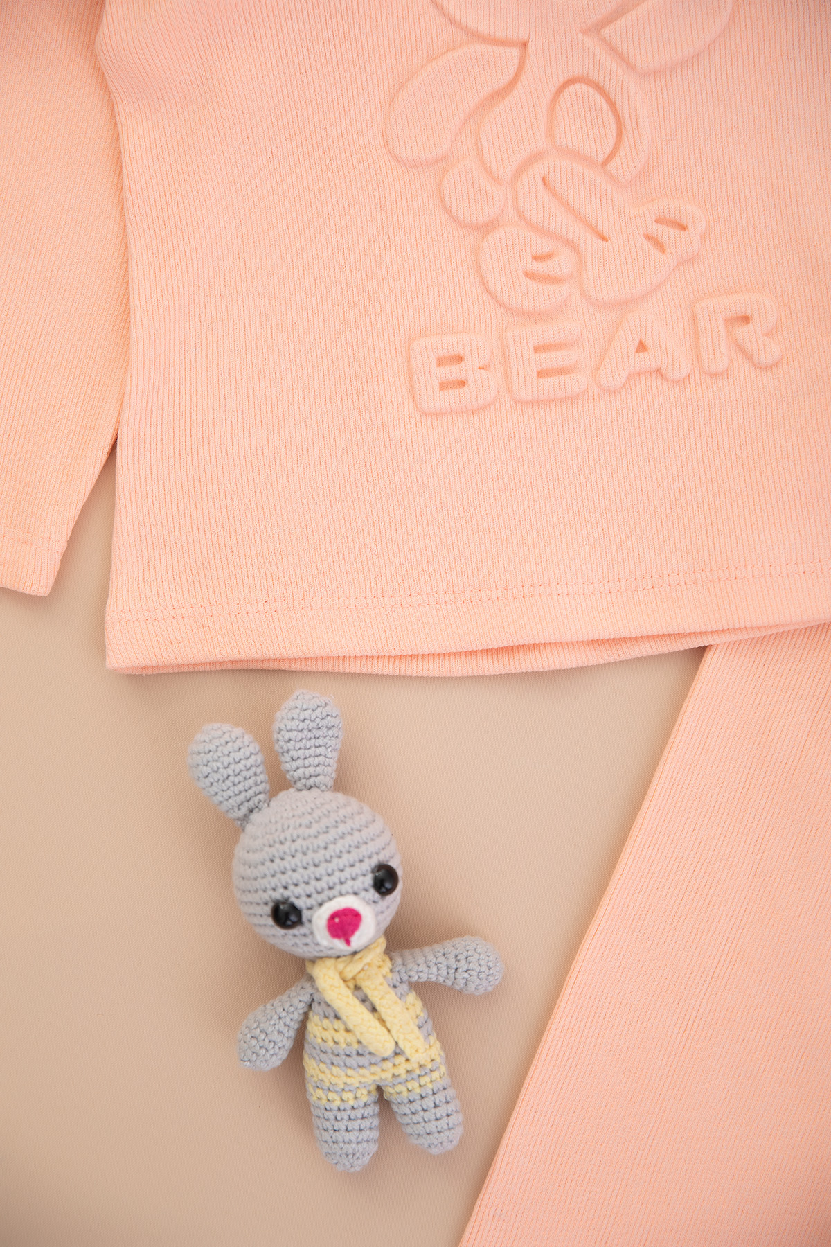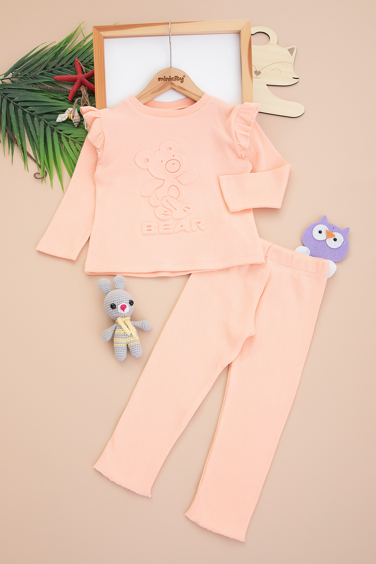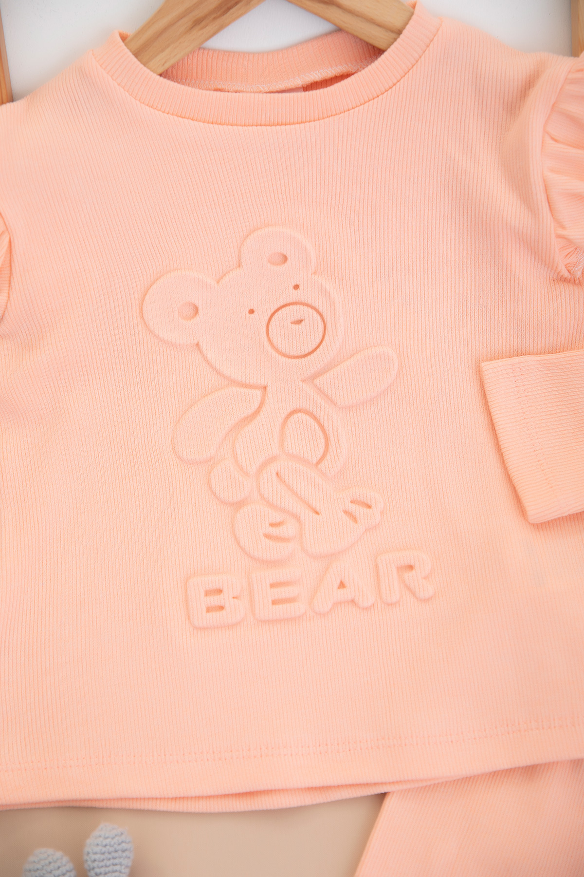 Kız Çocuk Bear Baskılı Fitilli Takım - 3408 (3-6 Yaş)