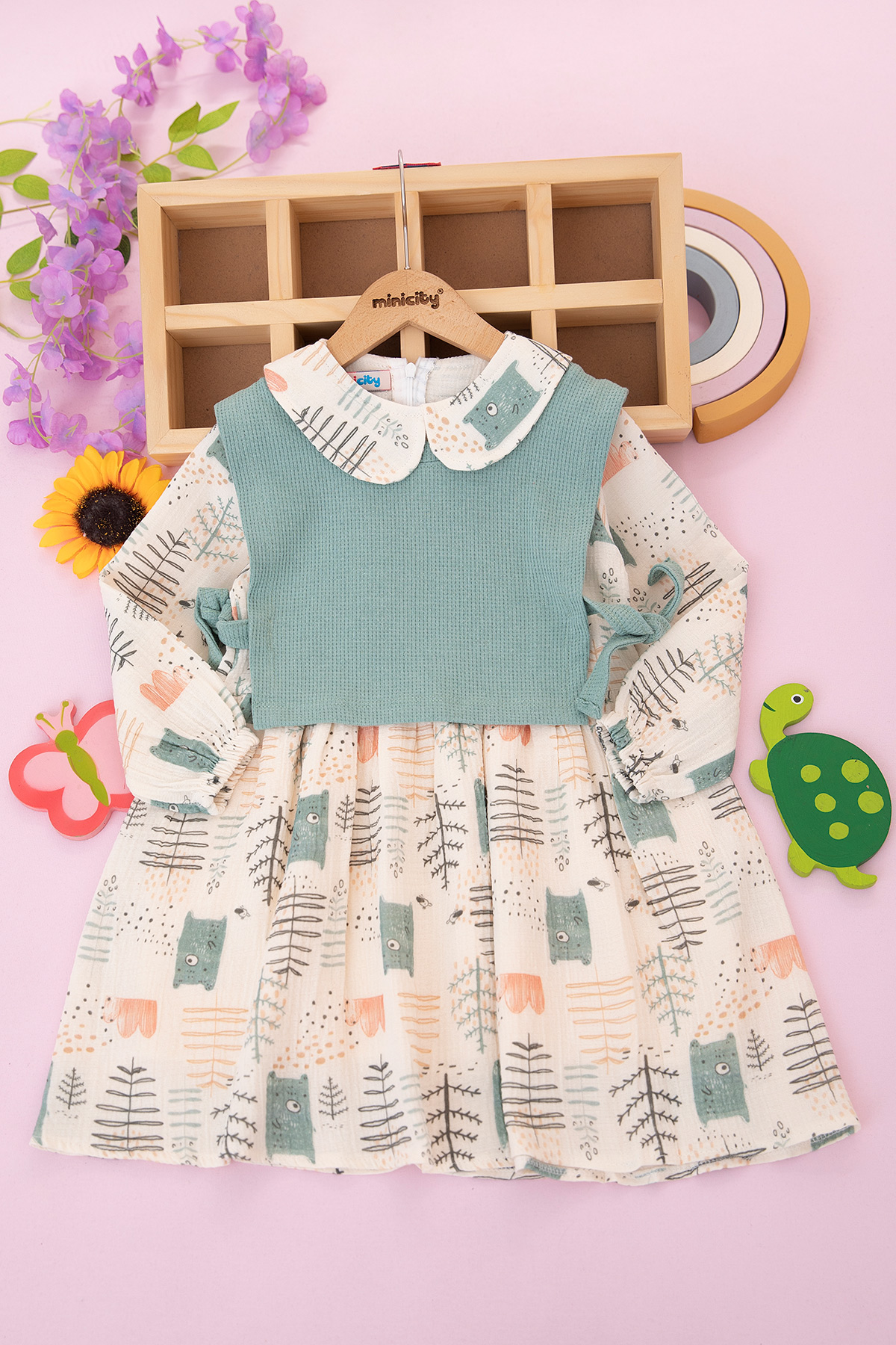 Kız Çocuk Bear Desenl Süveterli Elbise - 1598 (4-7 Yaş)
