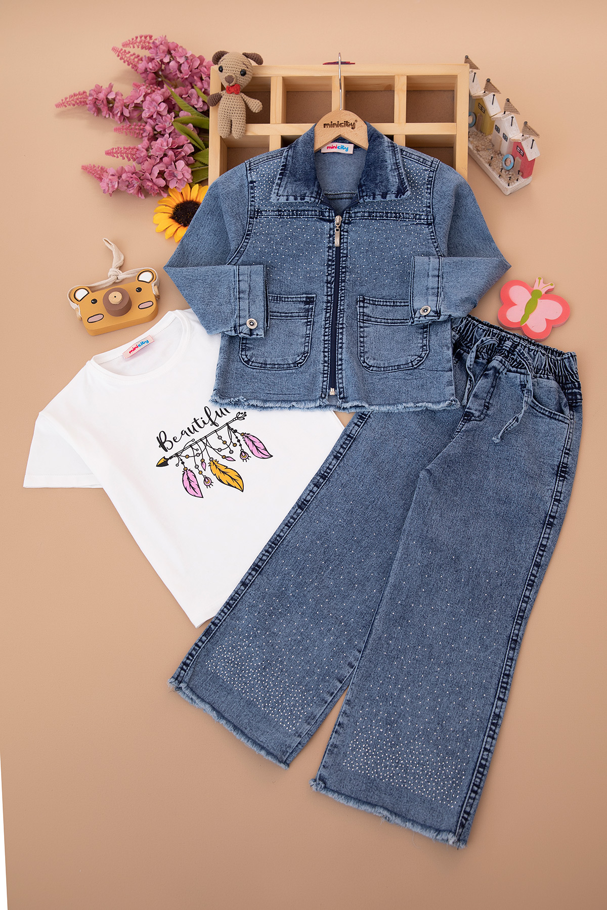 Kız Çocuk Beautiful Kot Montlu Takım - 70640 (5-12 Yaş)