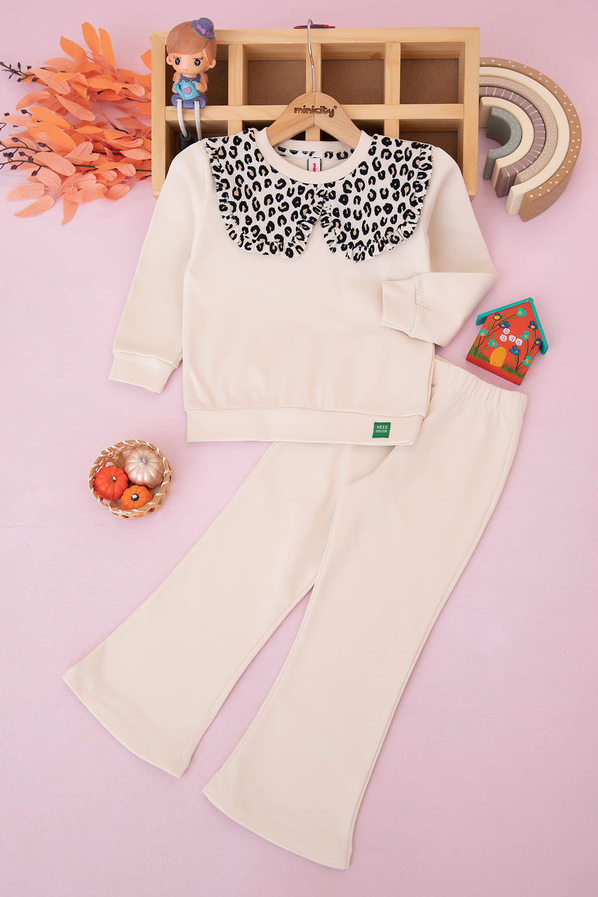 Kız Çocuk Bebe Yaka Baskılı Taytlı Takım (2-9 Yaş)