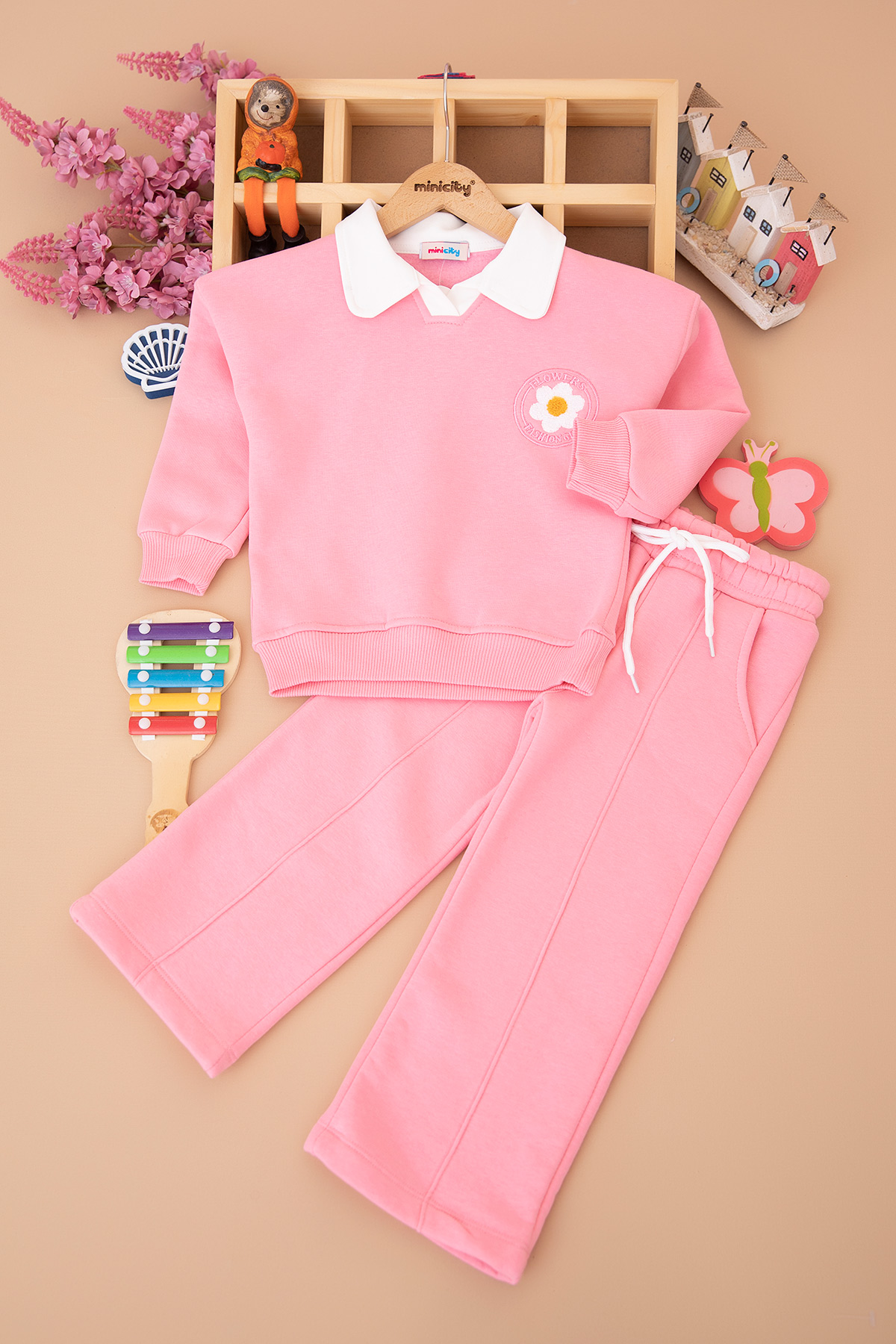 Kız Çocuk Bebe Yaka Çiçek Nakışlı Takım - 5041 (3-10 Yaş)
