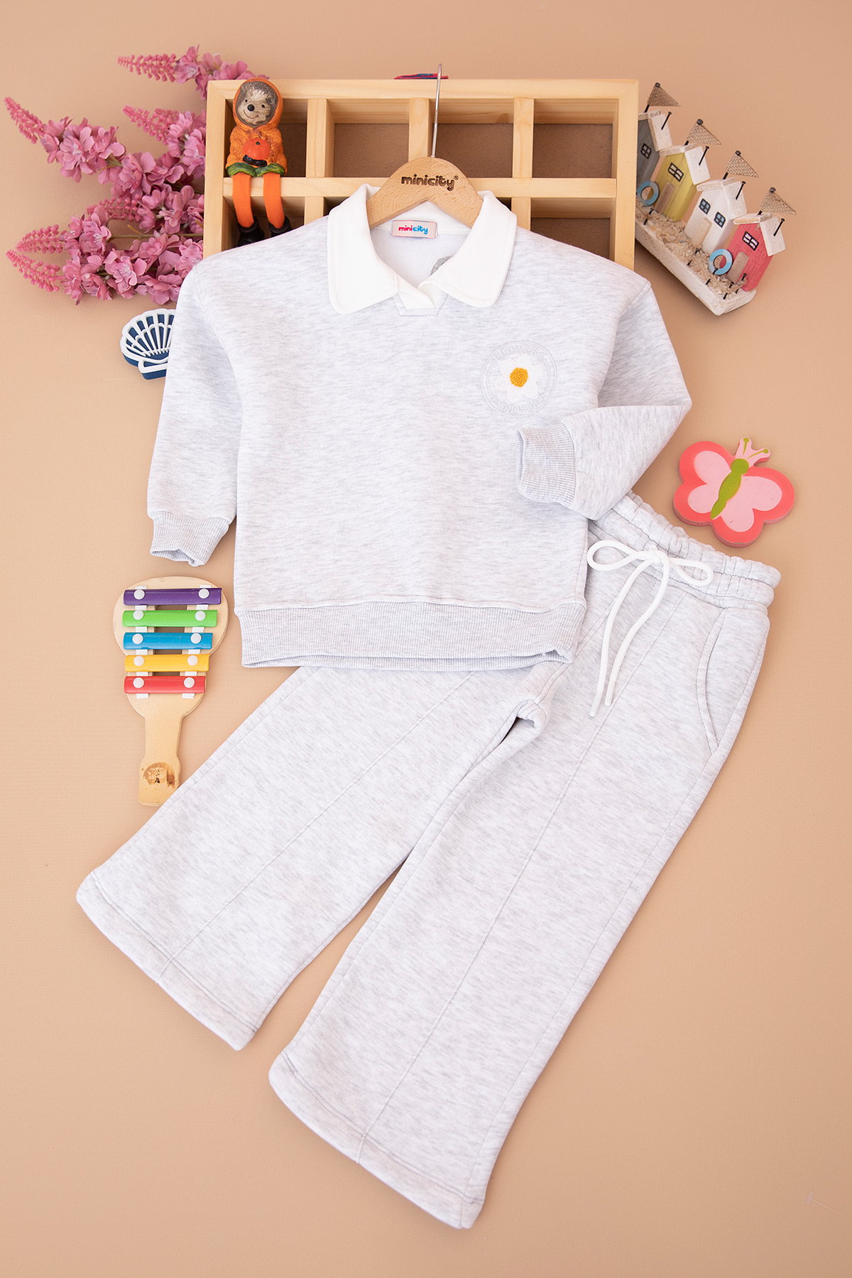 Kız Çocuk Bebe Yaka Çiçek Nakışlı Takım - 5041 (3-10 Yaş)
