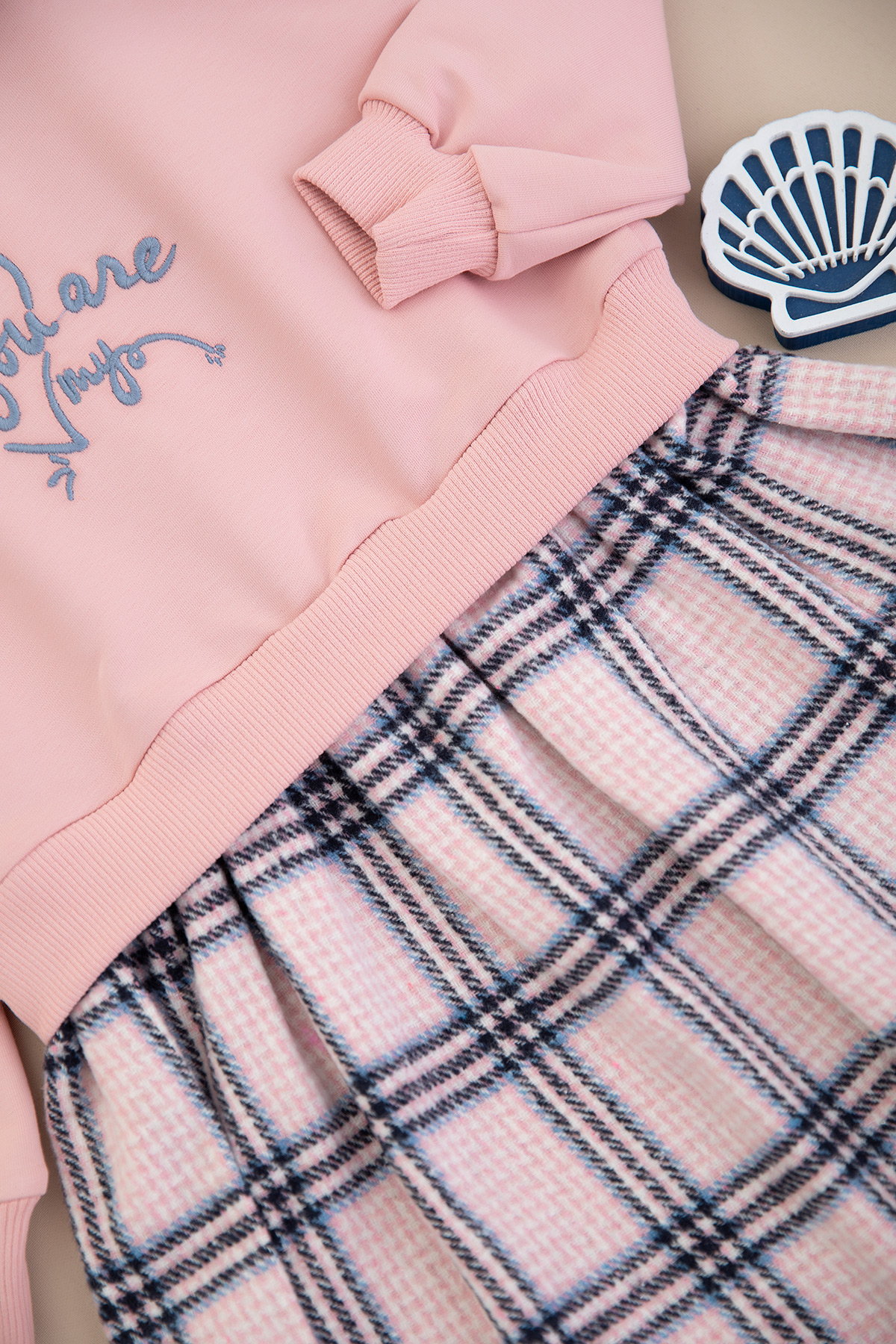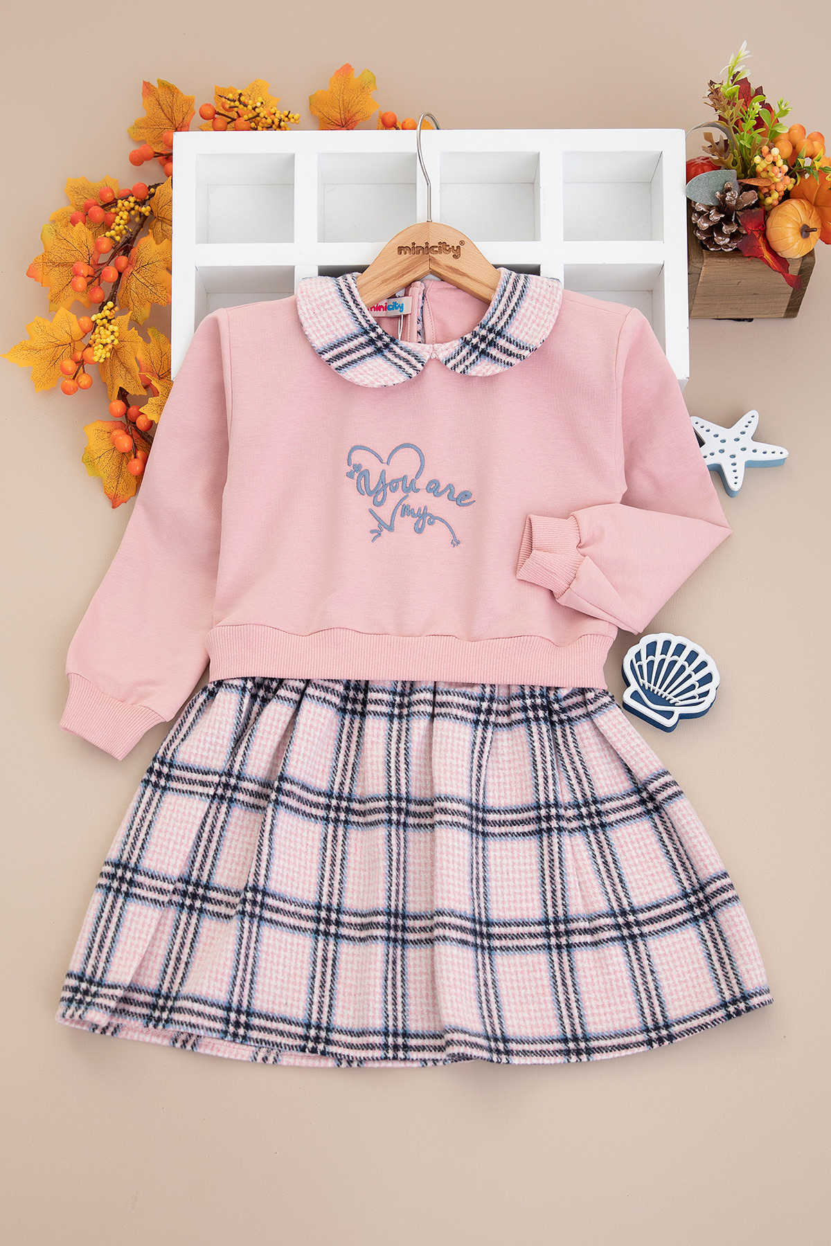 Kız Çocuk Bebe Yaka Ekose Elbise - 1715 (5-8 Yaş)