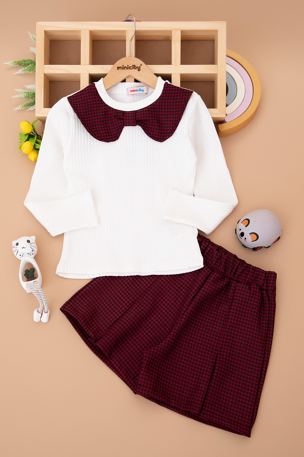 Kız Çocuk Bebe Yaka Ekoseli Şortlu Takım - 777 (6-10 Yaş)