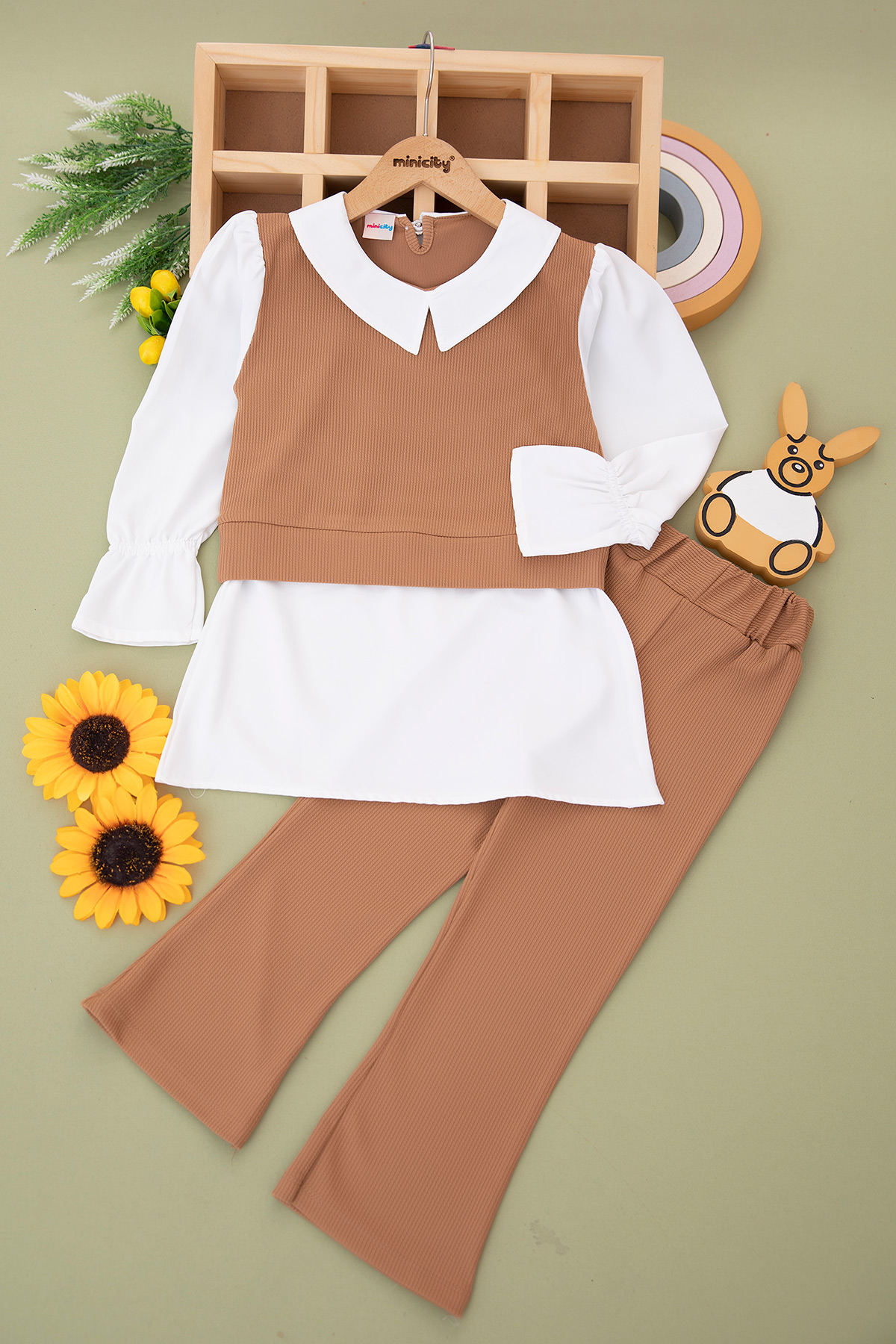 Kız Çocuk Bebe Yaka Fitilli Üçlü Takım (6-12 Yaş)