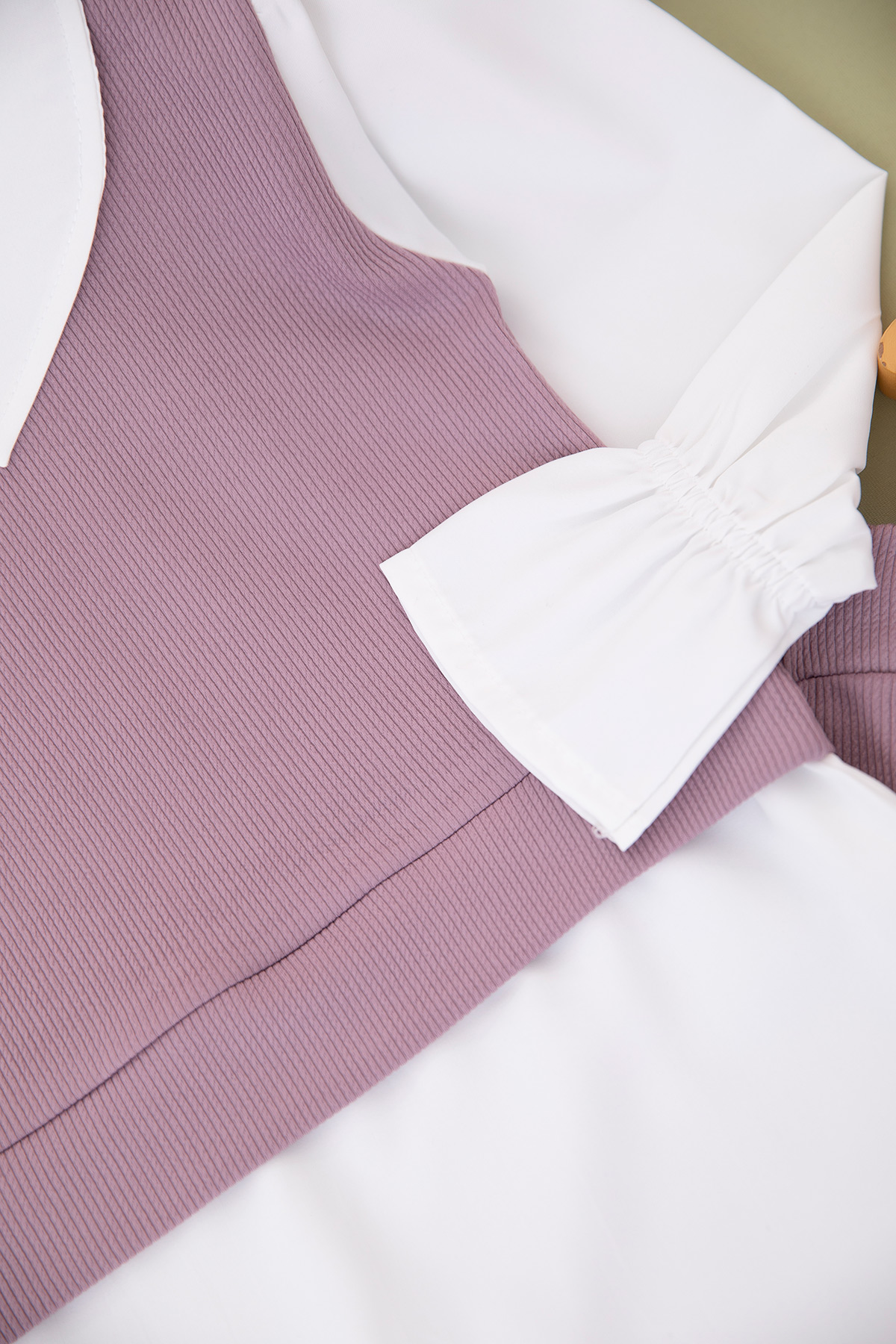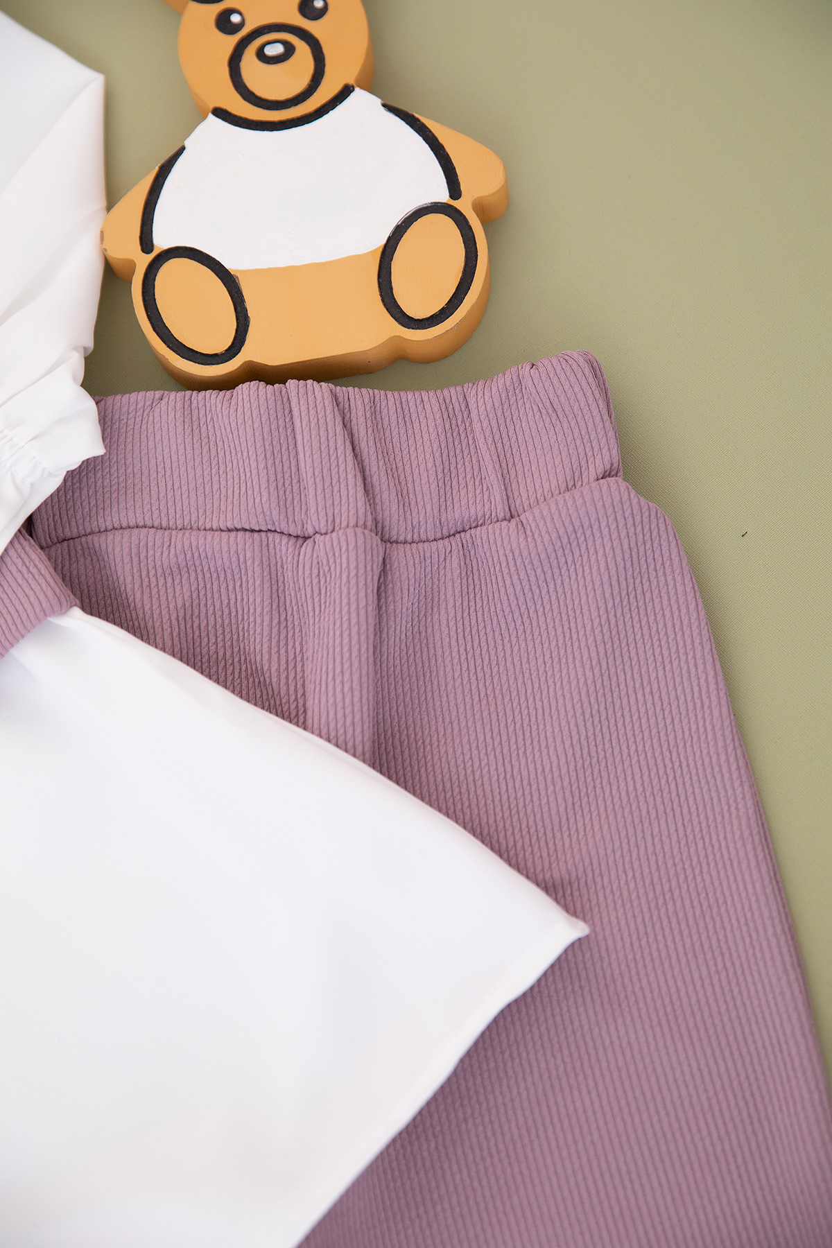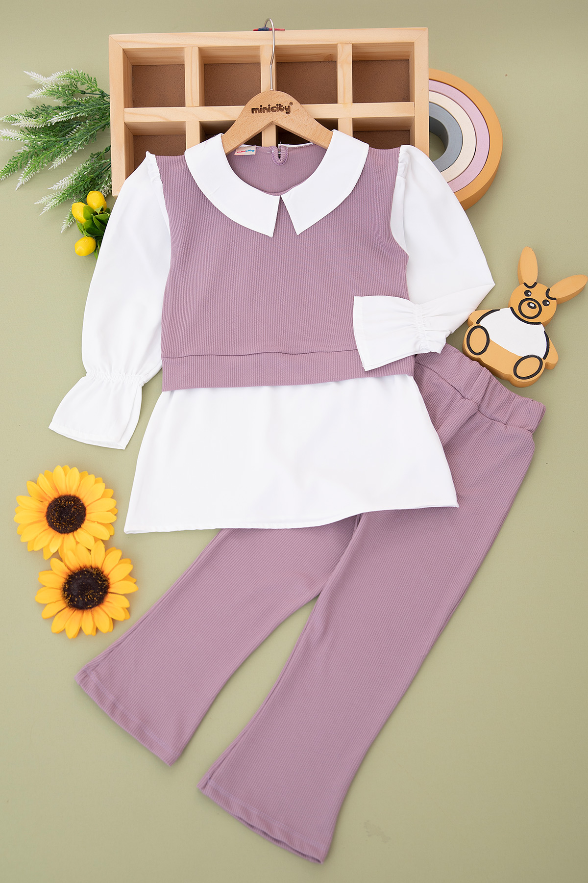 Kız Çocuk Bebe Yaka Fitilli Üçlü Takım (6-12 Yaş)