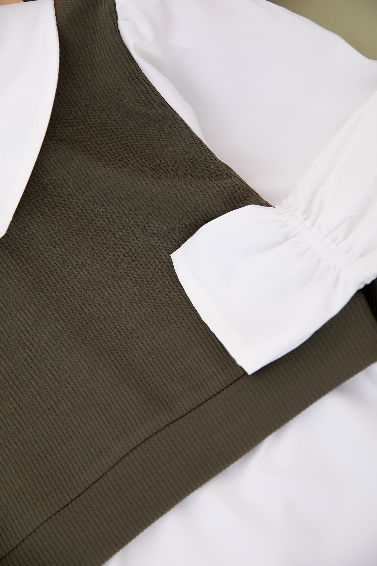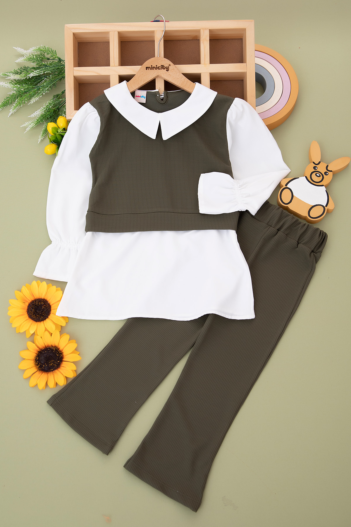 Kız Çocuk Bebe Yaka Fitilli Üçlü Takım (6-12 Yaş)