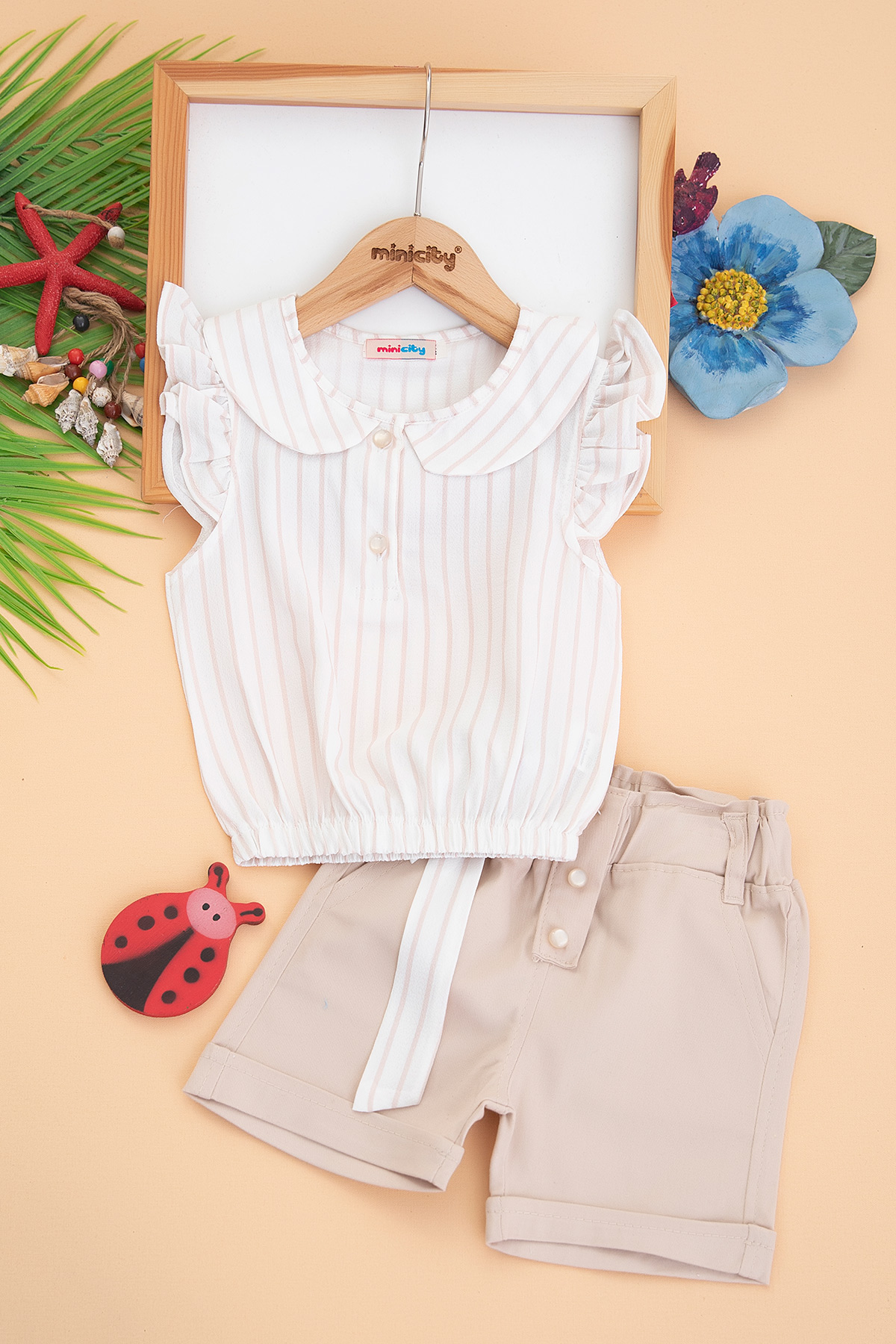 Kız Çocuk Bebe Yaka Keten Şortlu Takım - 4270 (2-5 Yaş)