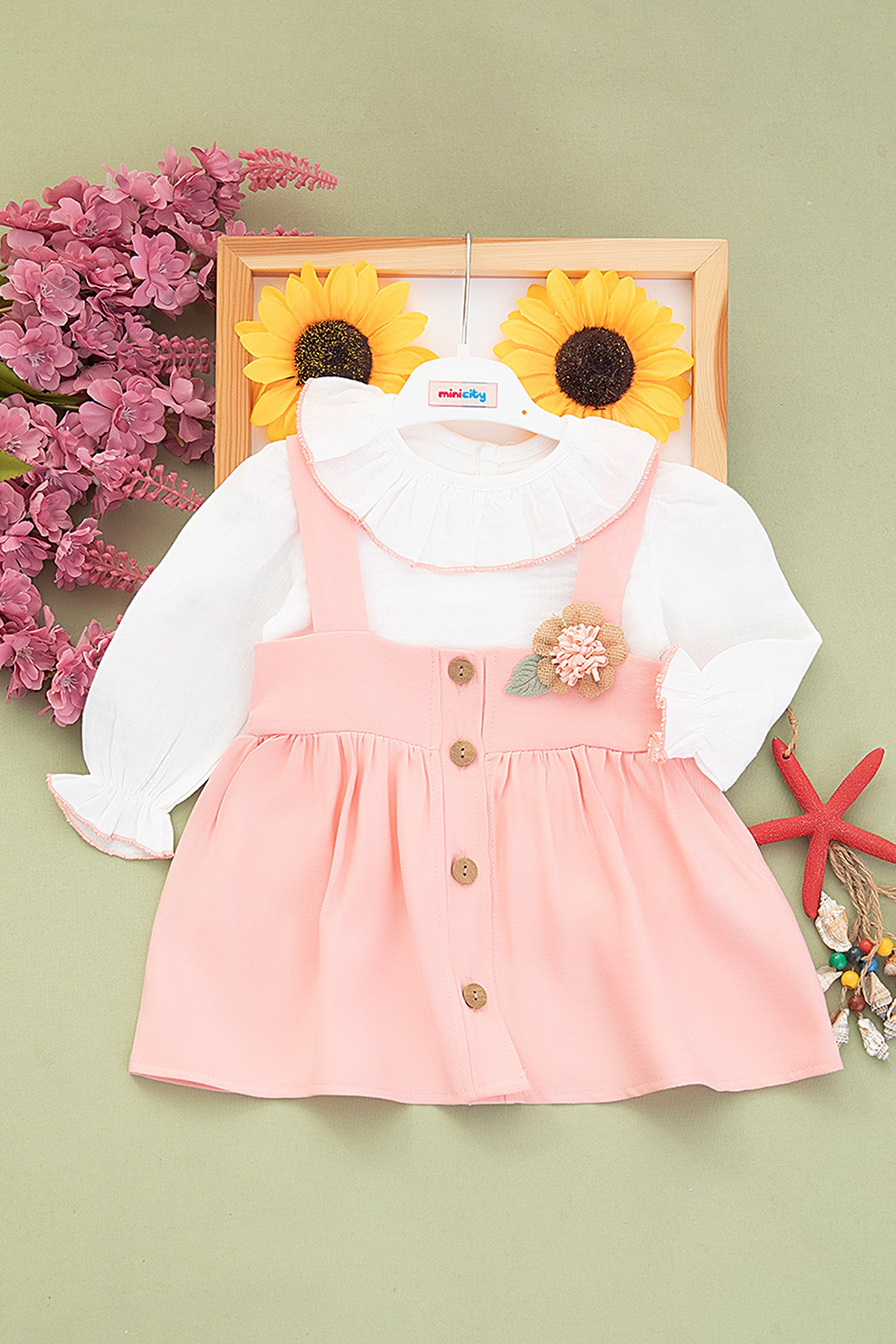 Kız Çocuk Begonia Düğmeli Badi Salopet Takım - 5063 (2-5 Yaş)