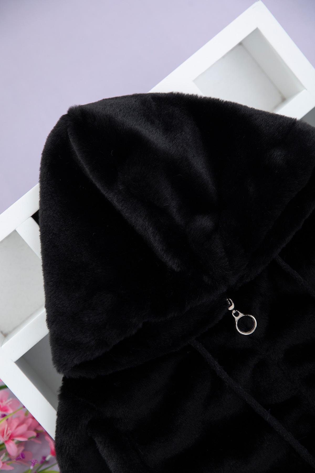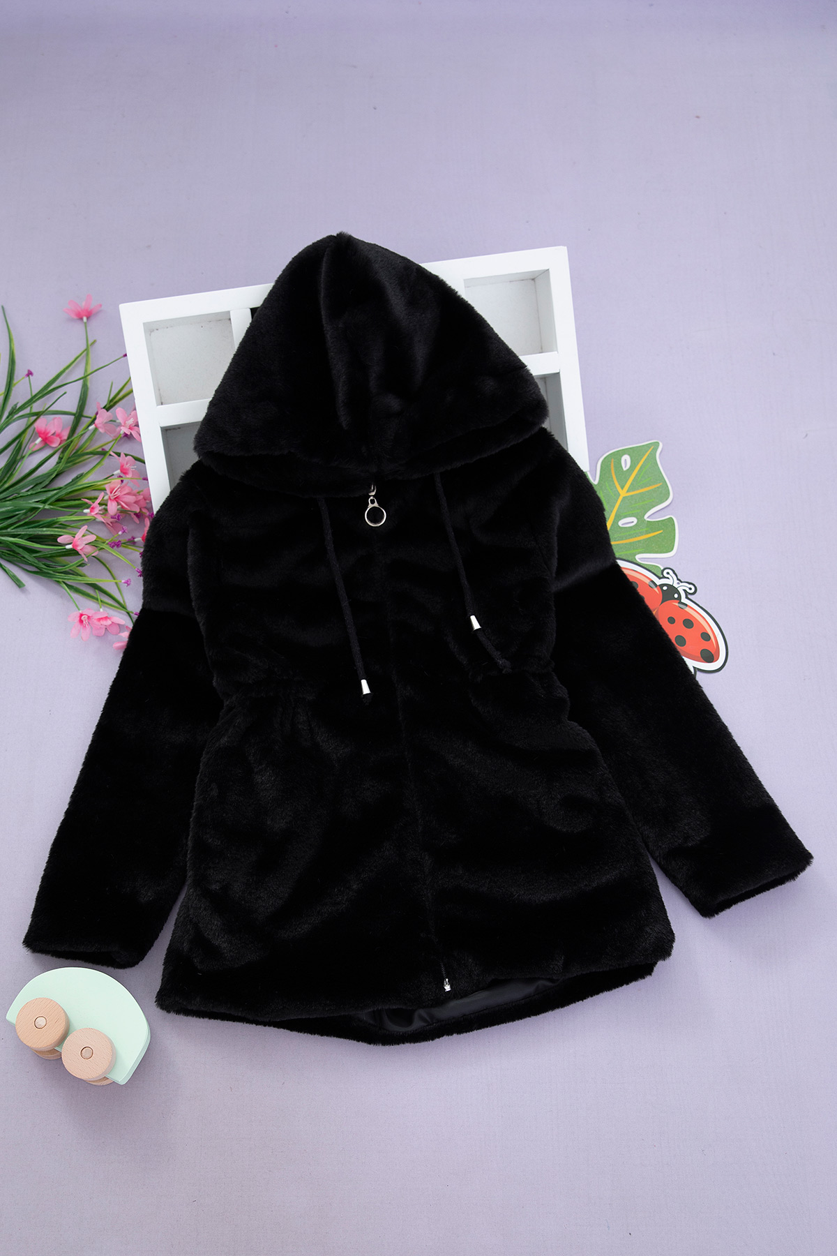 Kız Çocuk Beli Lastikli Peluş Mont (8-14 Yaş)