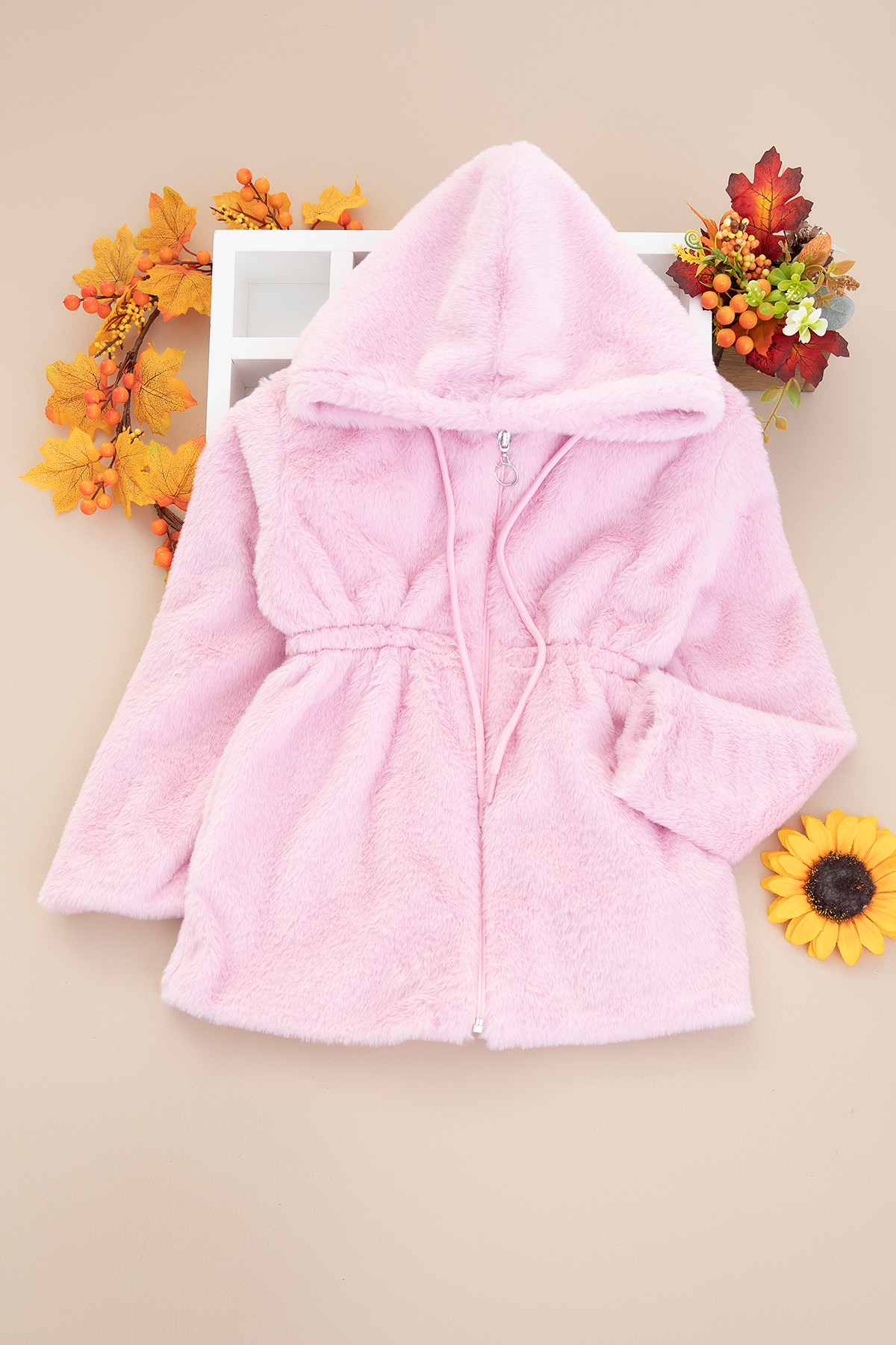Kız Çocuk Beli Lastikli Peluş Mont (8-14 Yaş)