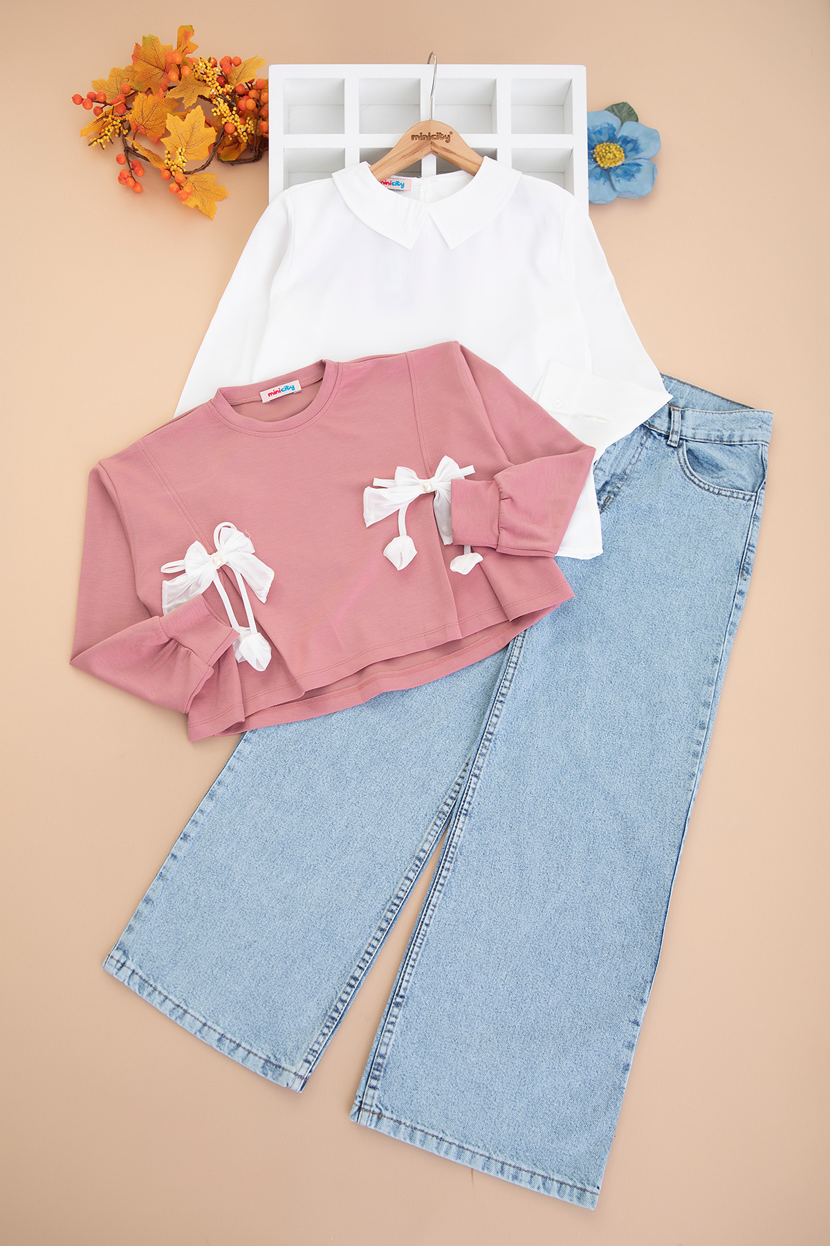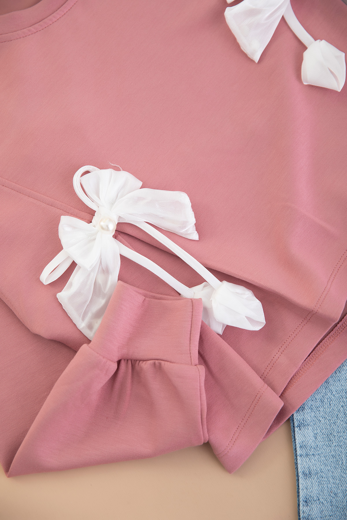 Kız Çocuk Beyaz Fiyonklu Takım - 486 (10-14 Yaş)