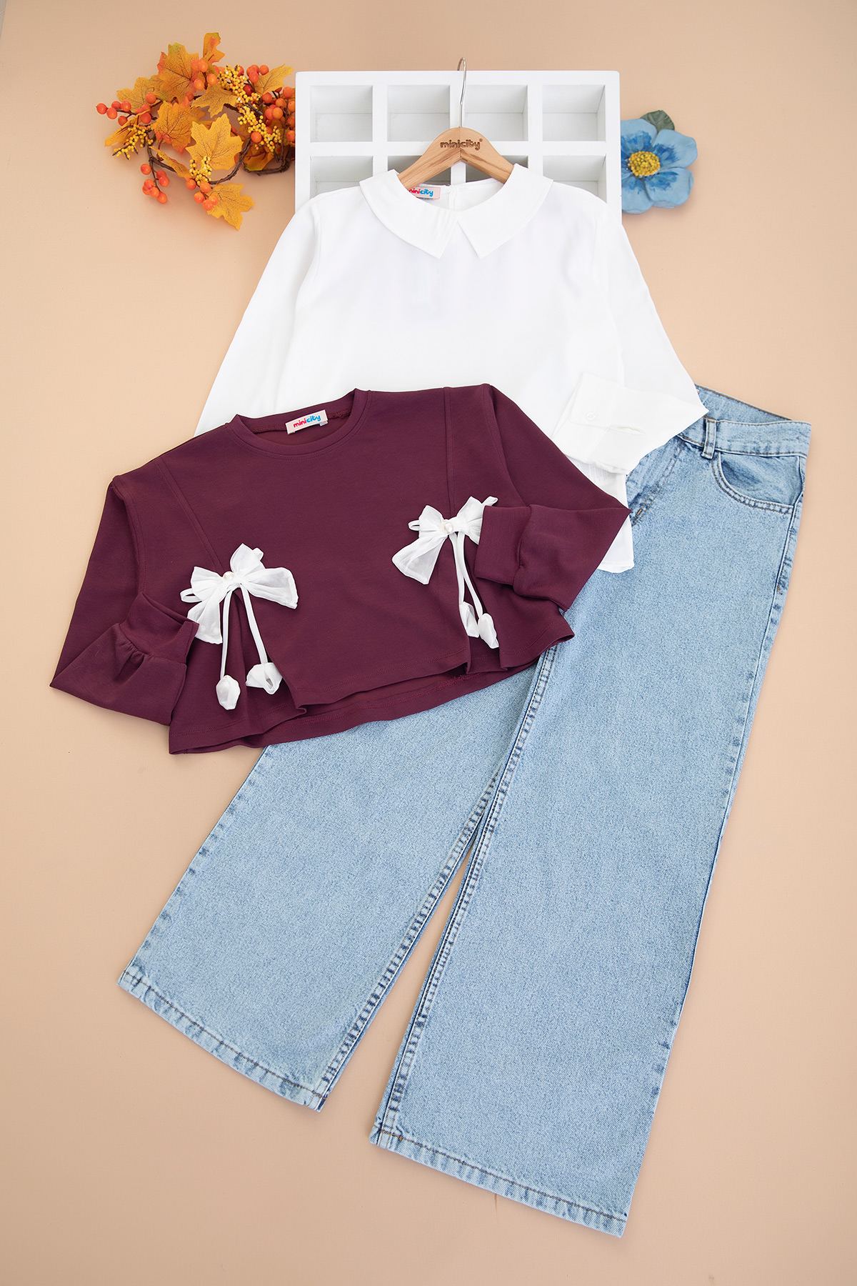 Kız Çocuk Beyaz Fiyonklu Takım - 486 (10-14 Yaş)