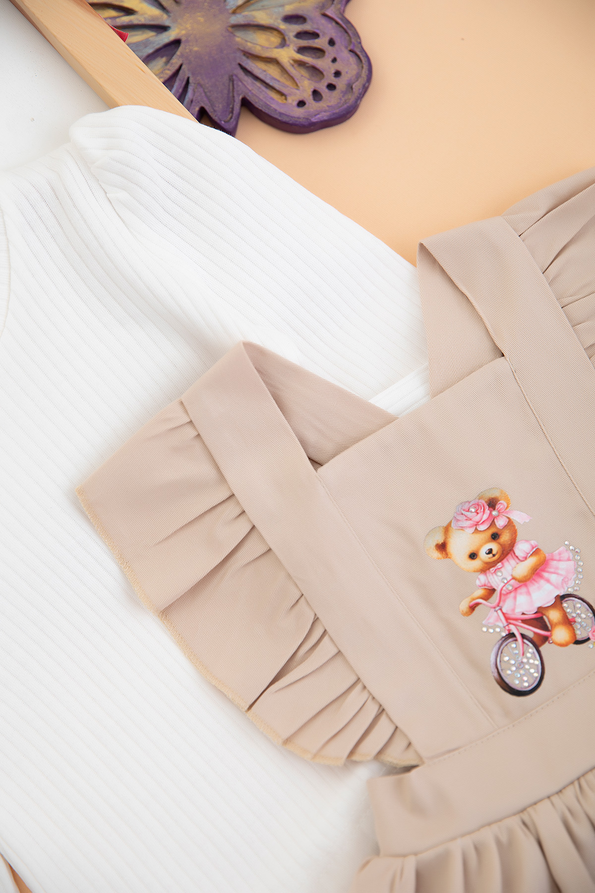 Kız Çocuk Bisiklet Ayıcık Baskılı Takım - 5037 (2-5 Yaş)