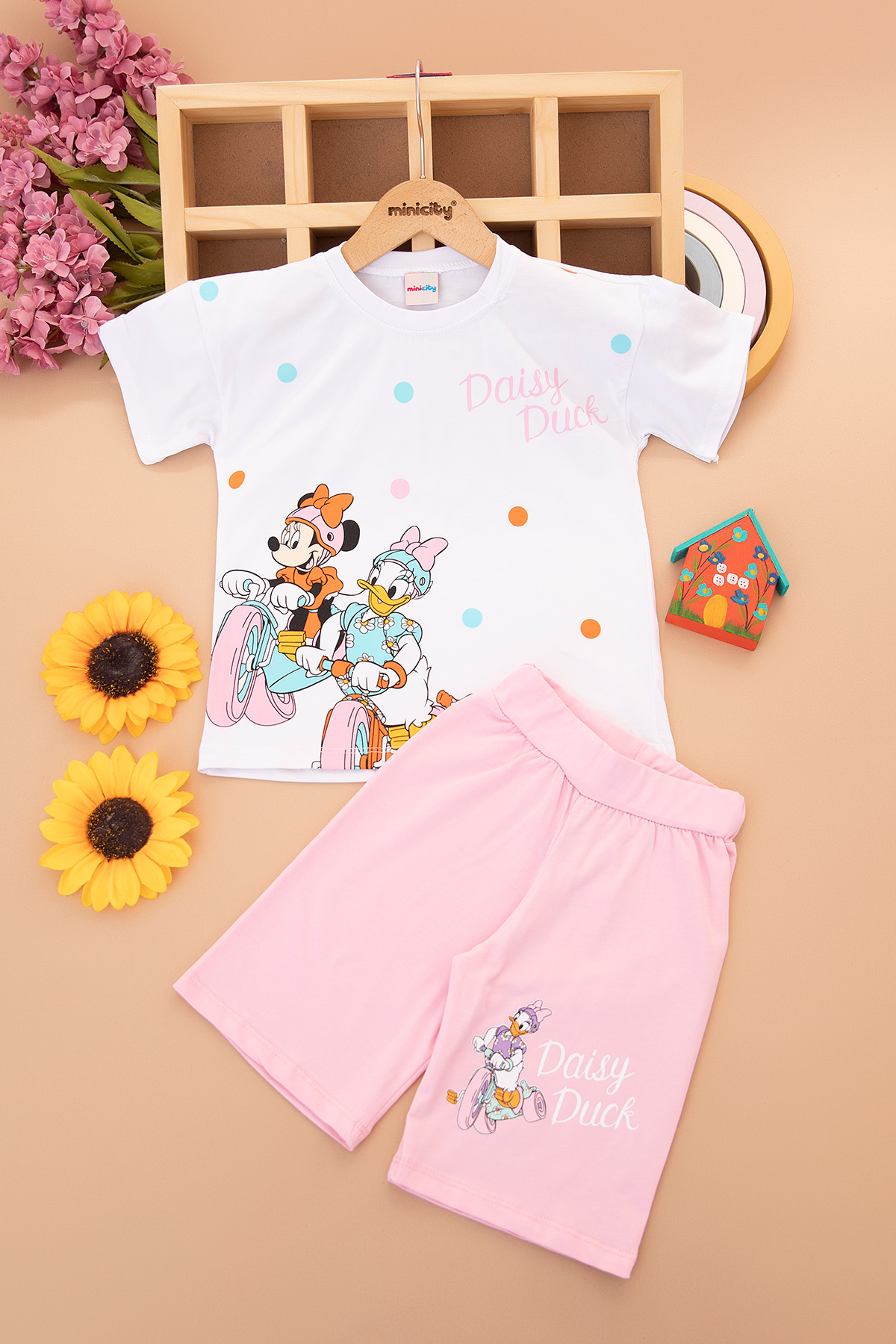 Kız Çocuk Bisikletli Daisy Duck Şortlu Takım (4-10 Yaş)