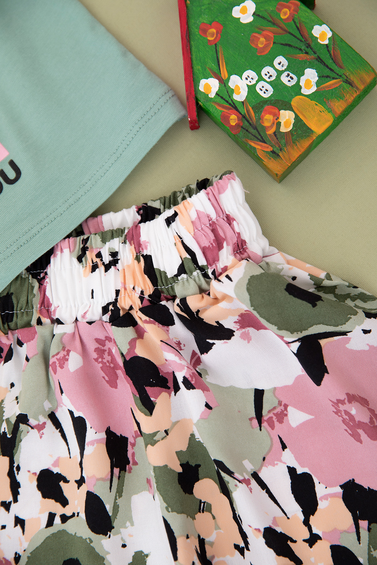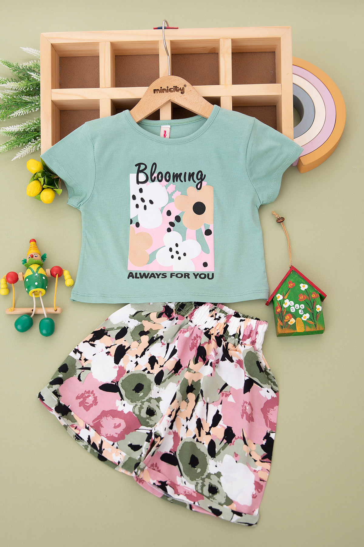 Kız Çocuk Blooming Baskılı Şortlu Takım - 3009 (5-8 Yaş)