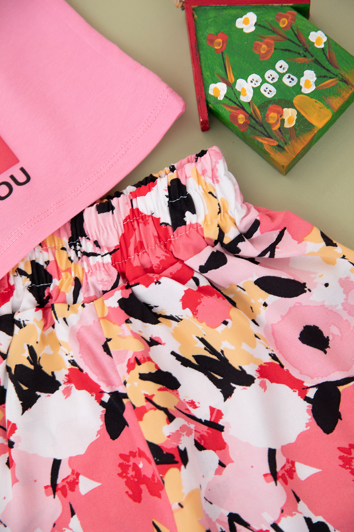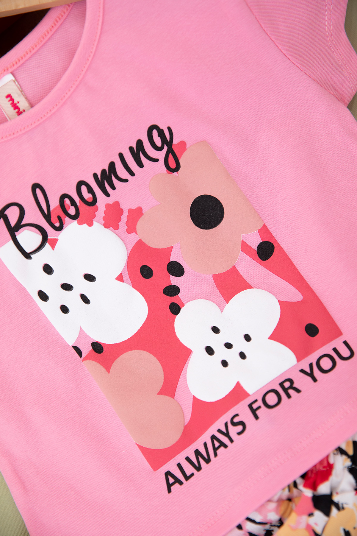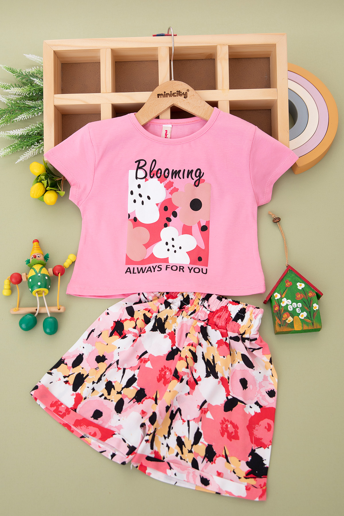 Kız Çocuk Blooming Baskılı Şortlu Takım - 3009 (5-8 Yaş)