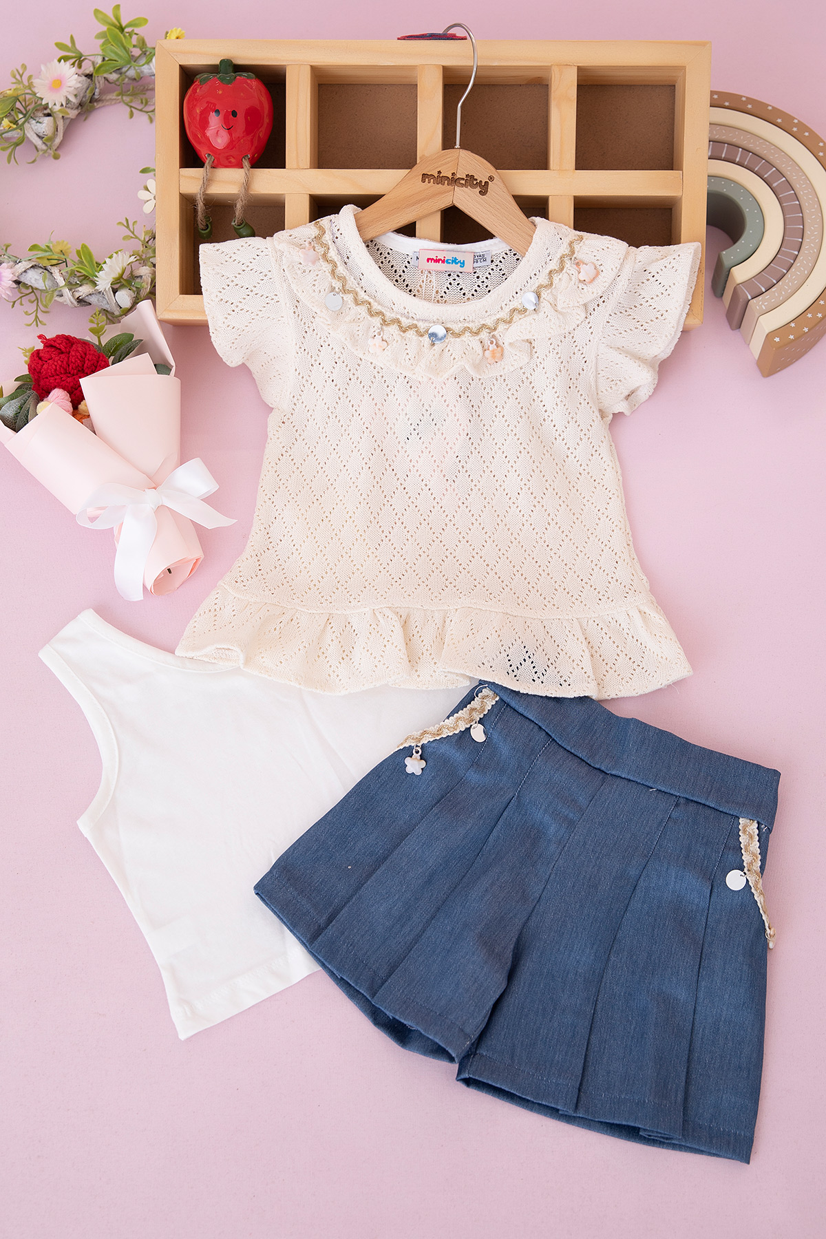 Kız Çocuk Boncuklu Üçlü Takım - 378 (7-10 Yaş)