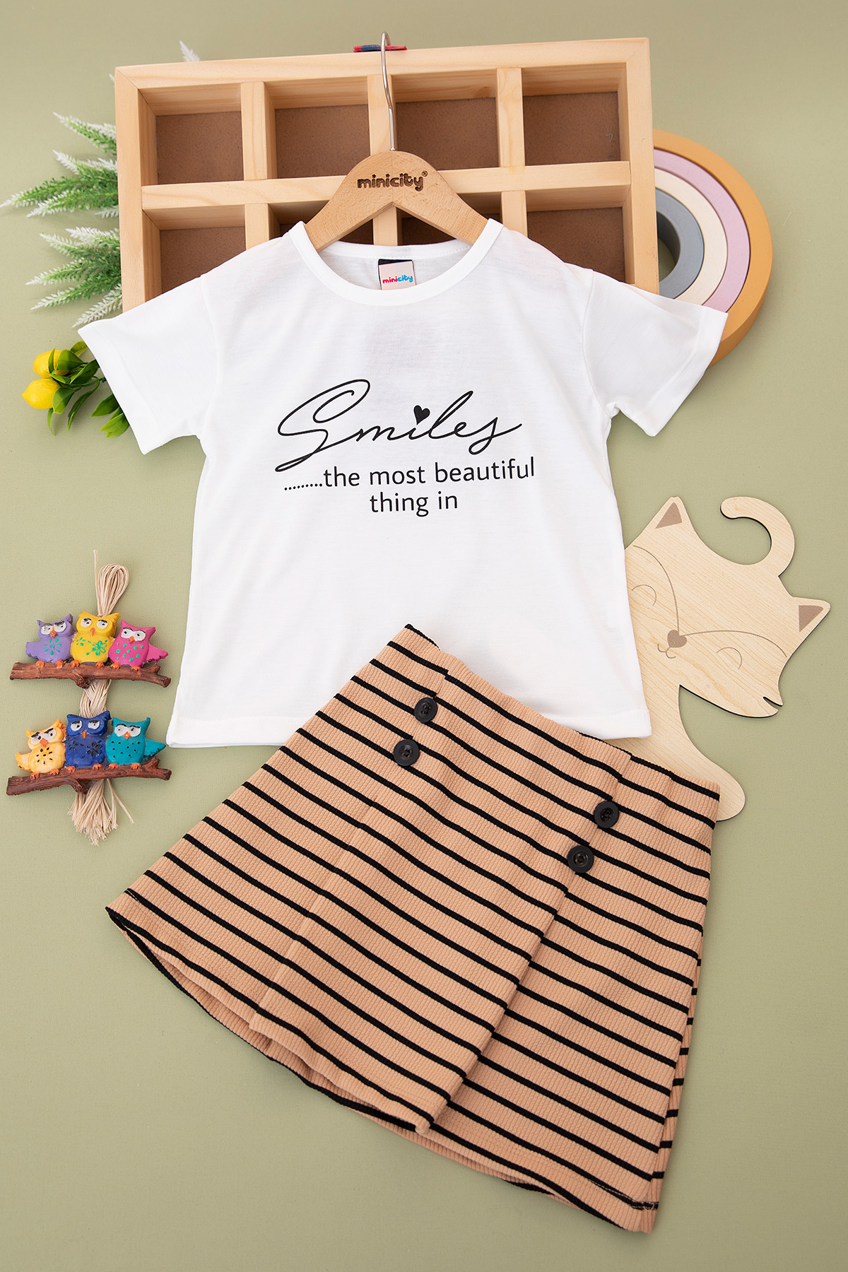Kız Çocuk Börümcük Çizgili Etekli Takım - 10605 (4-8 Yaş)