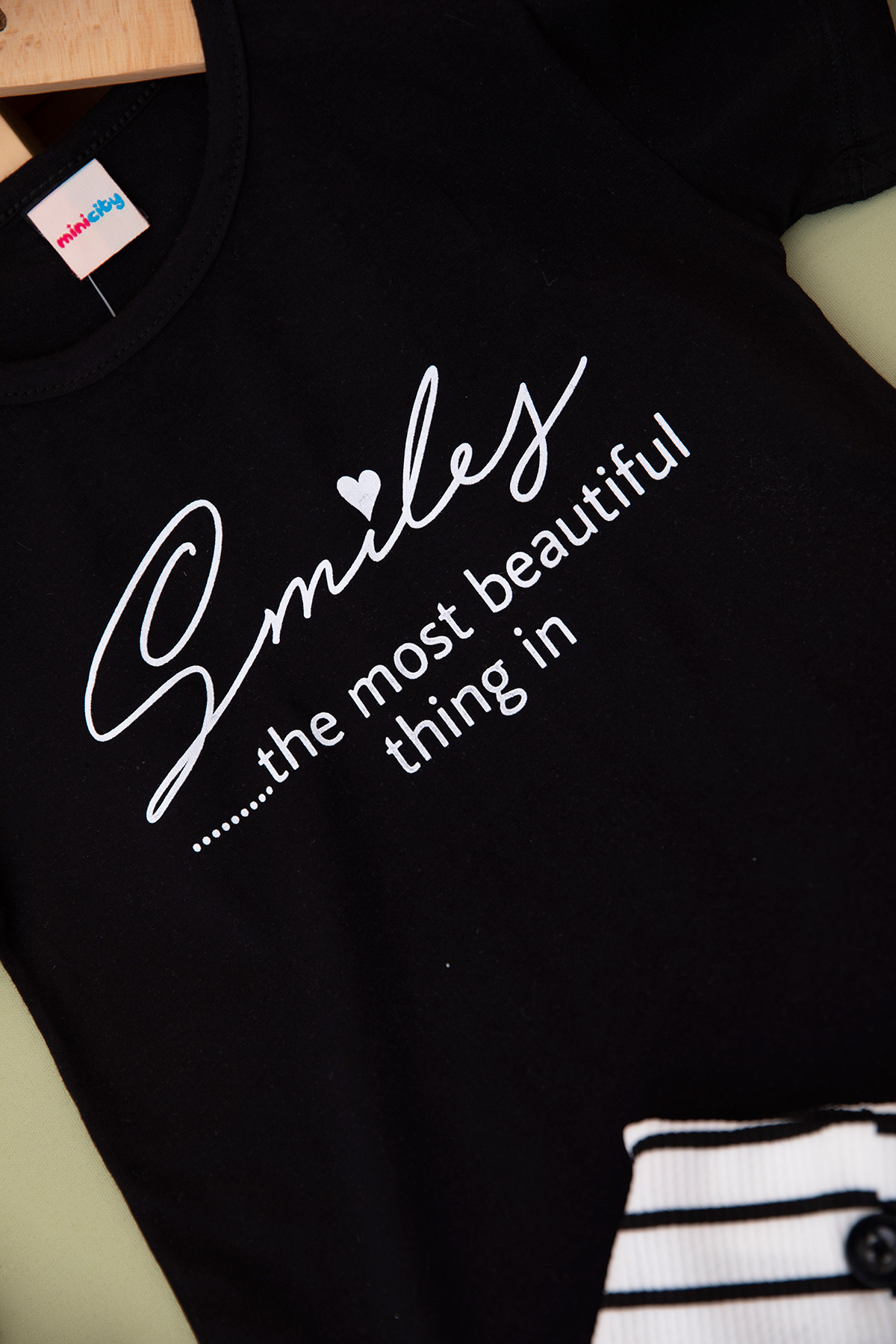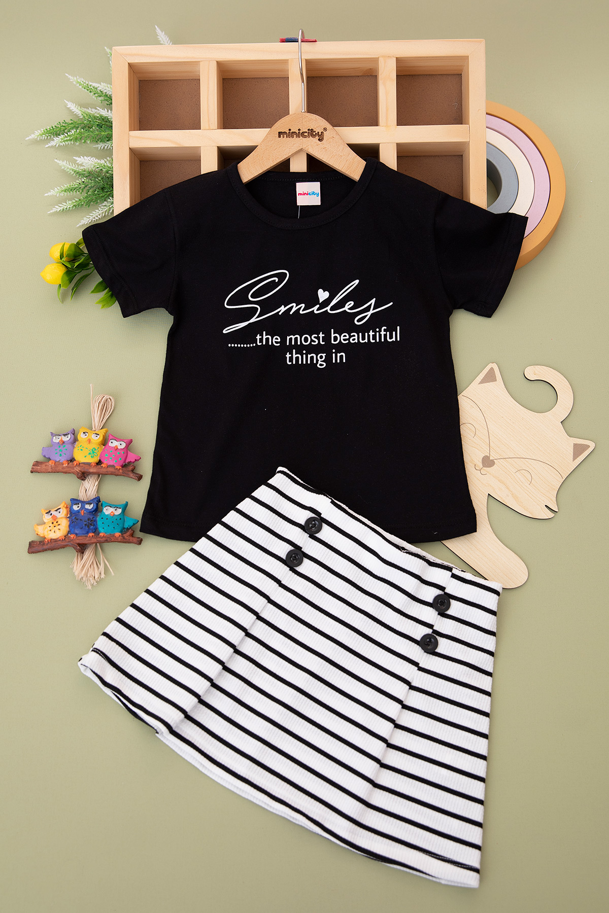 Kız Çocuk Börümcük Çizgili Etekli Takım - 10605 (4-8 Yaş)