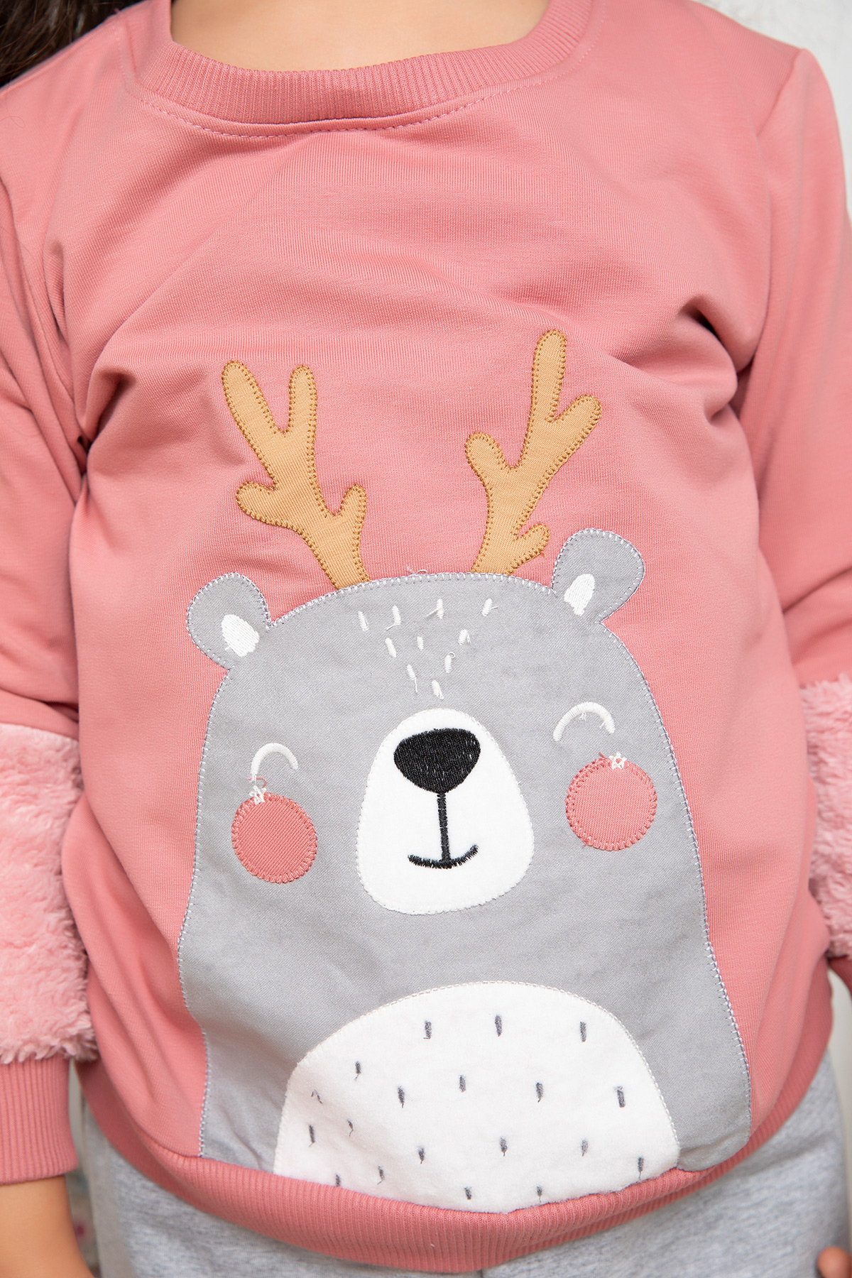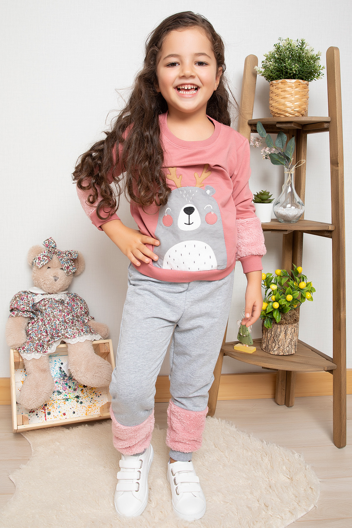 Kız Çocuk Boynuzlu Ayı Nakışlı Takım - 1007 (2-6 Yaş)