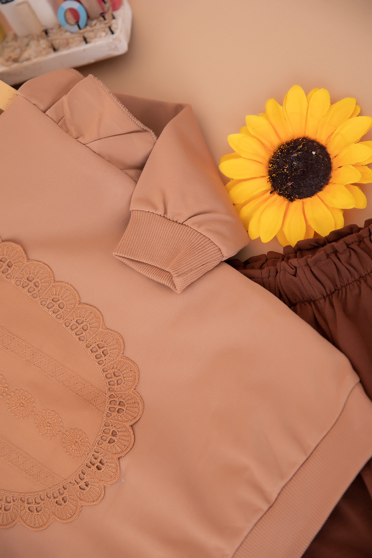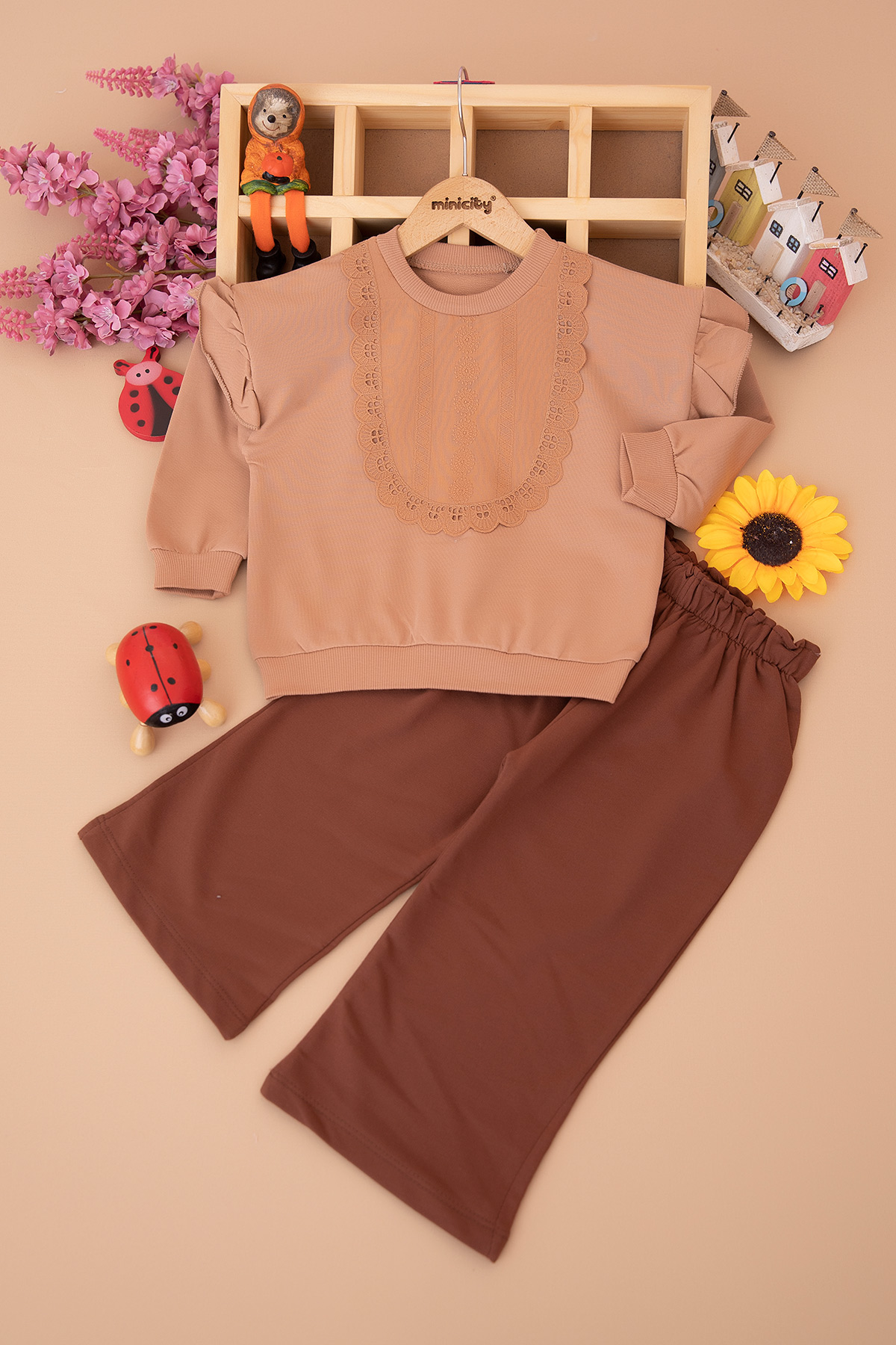 Kız Çocuk Brode Gövde Yakalı Takım - 2829 (2-6 Yaş)