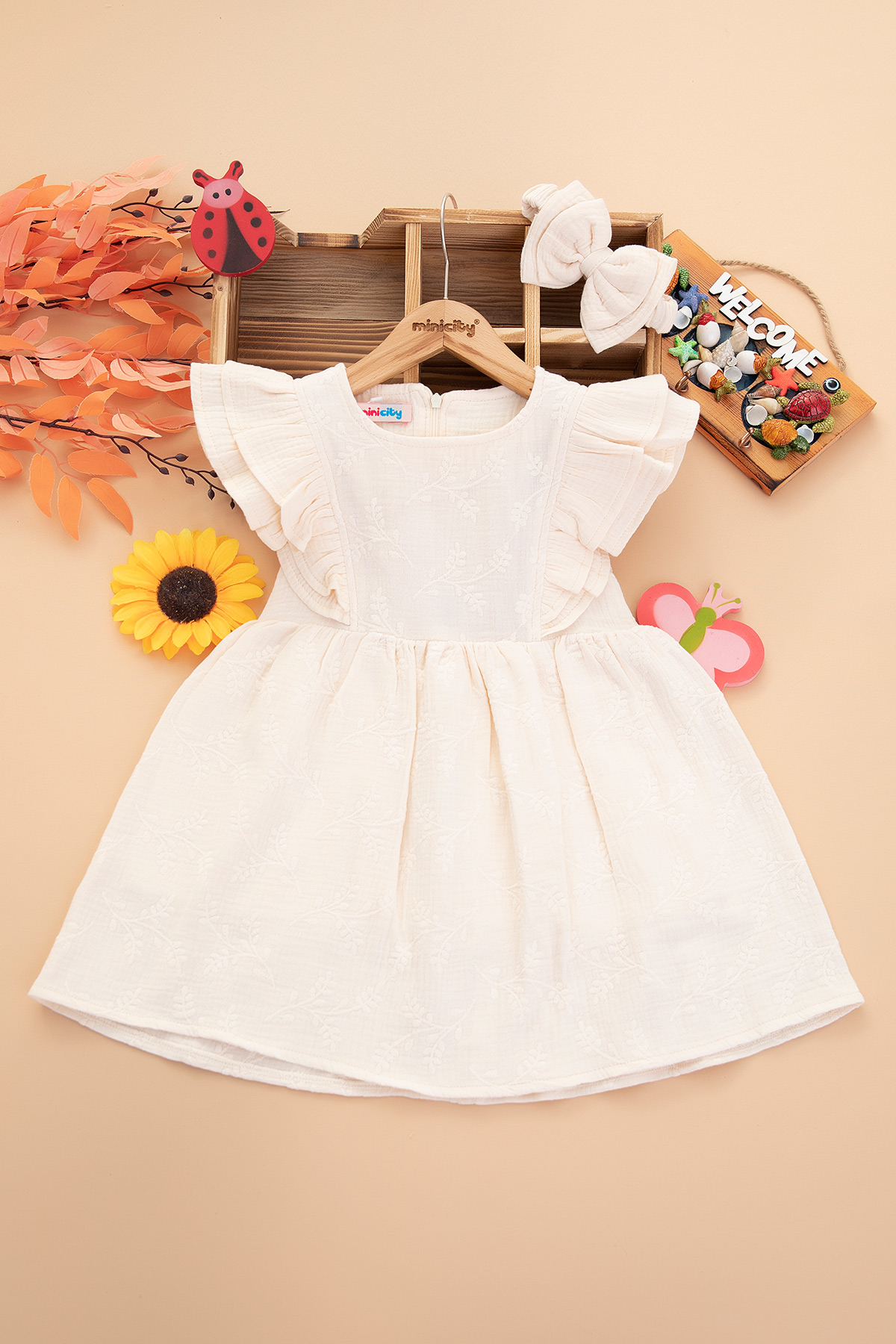 Kız Çocuk Brode Saç Bantlı Elbise - 1673 (3-6 Yaş)