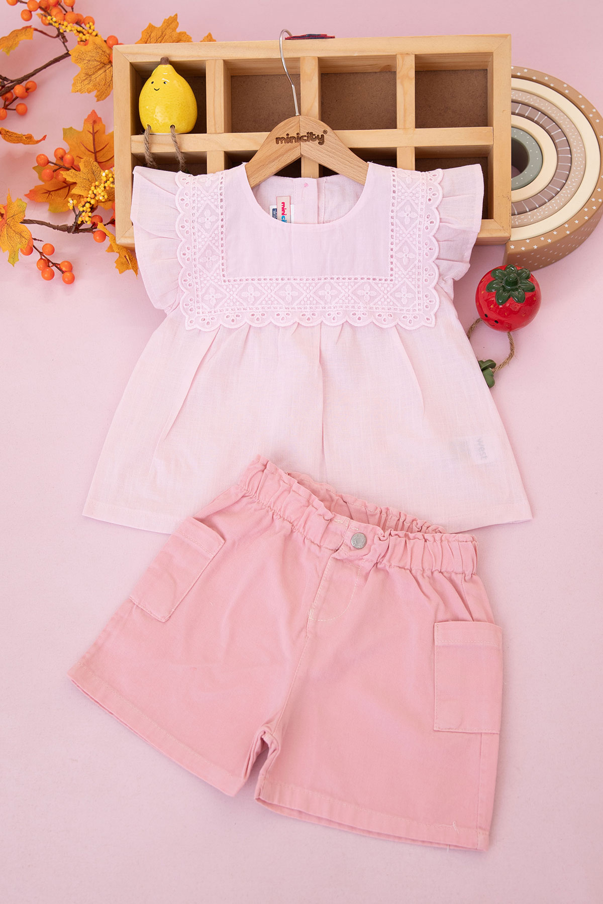 Kız Çocuk Brodeli Şortlu Takım - 326113 (3-7 Yaş)