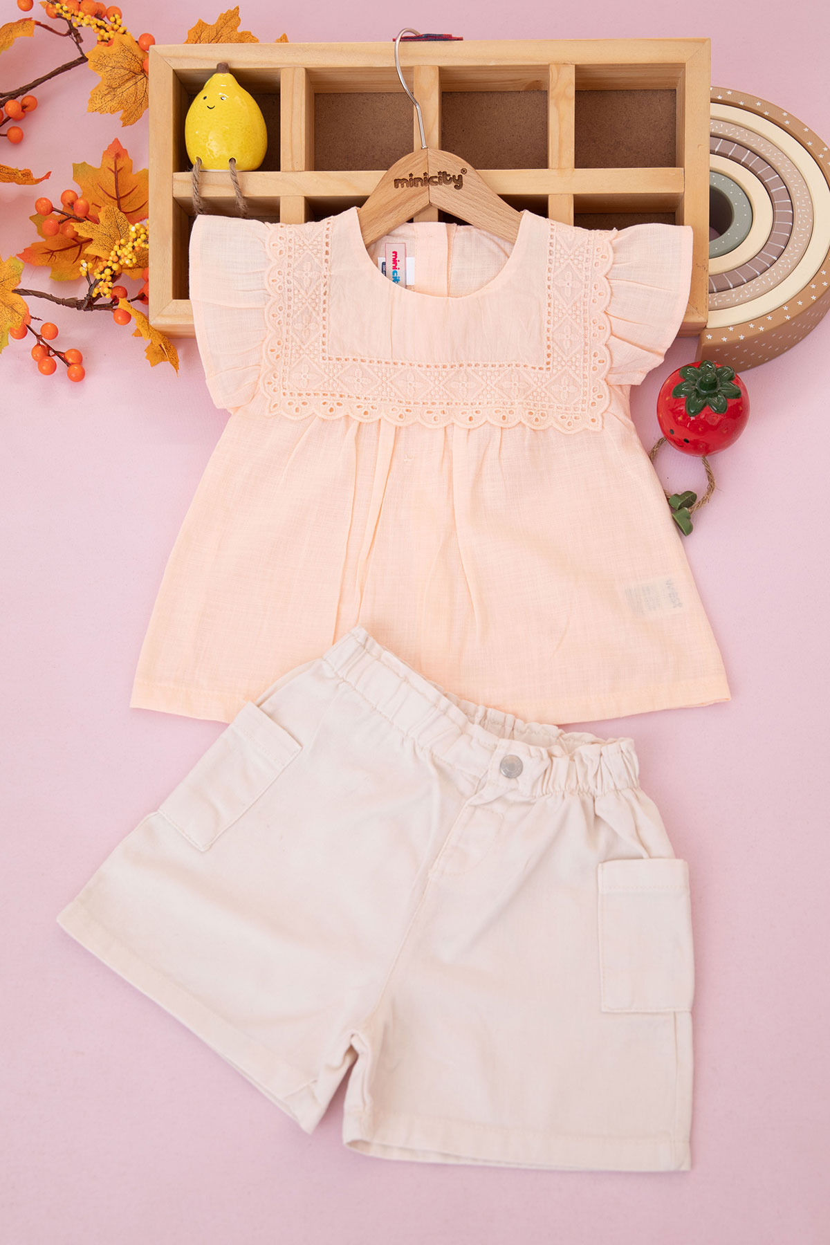 Kız Çocuk Brodeli Şortlu Takım - 326113 (3-7 Yaş)