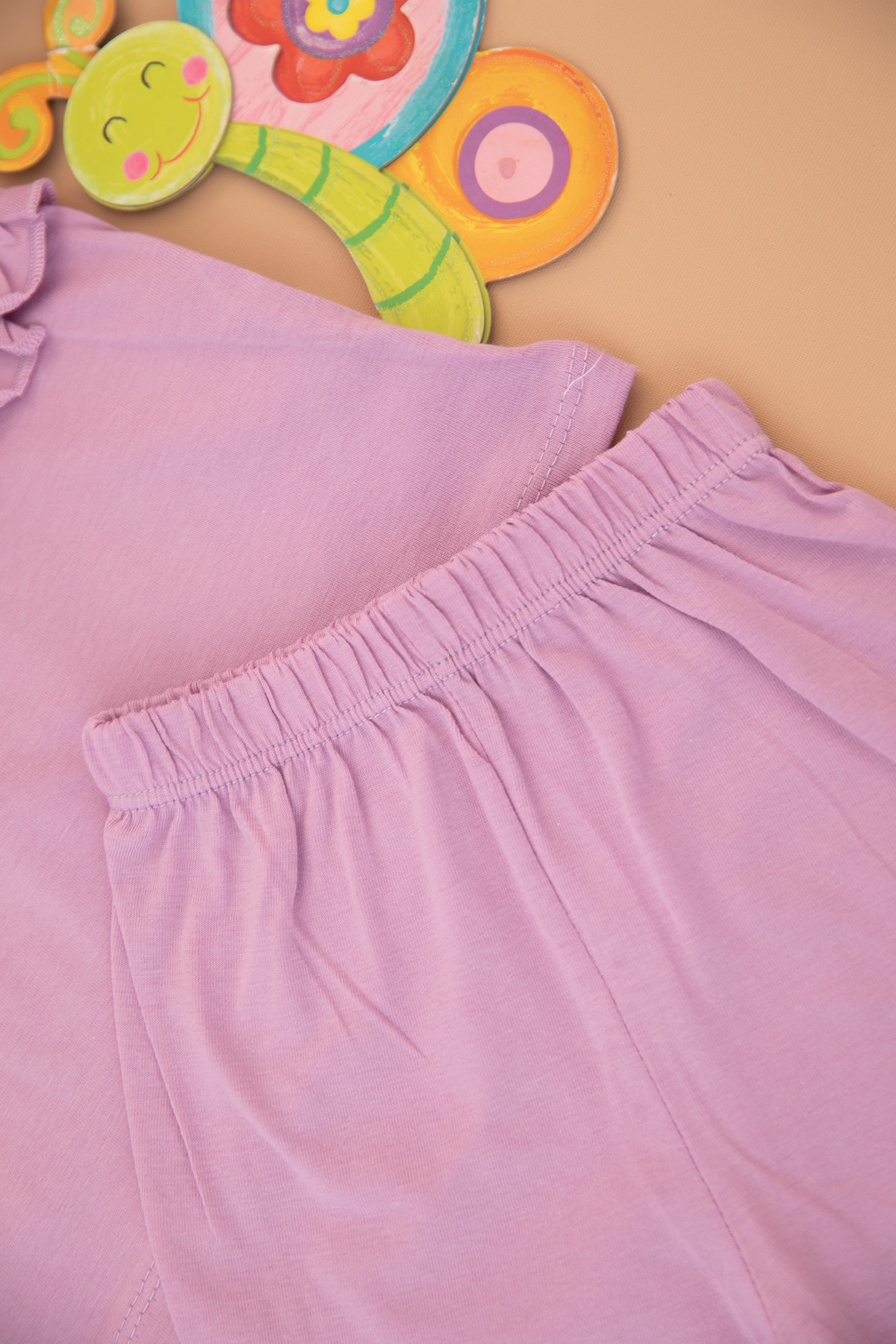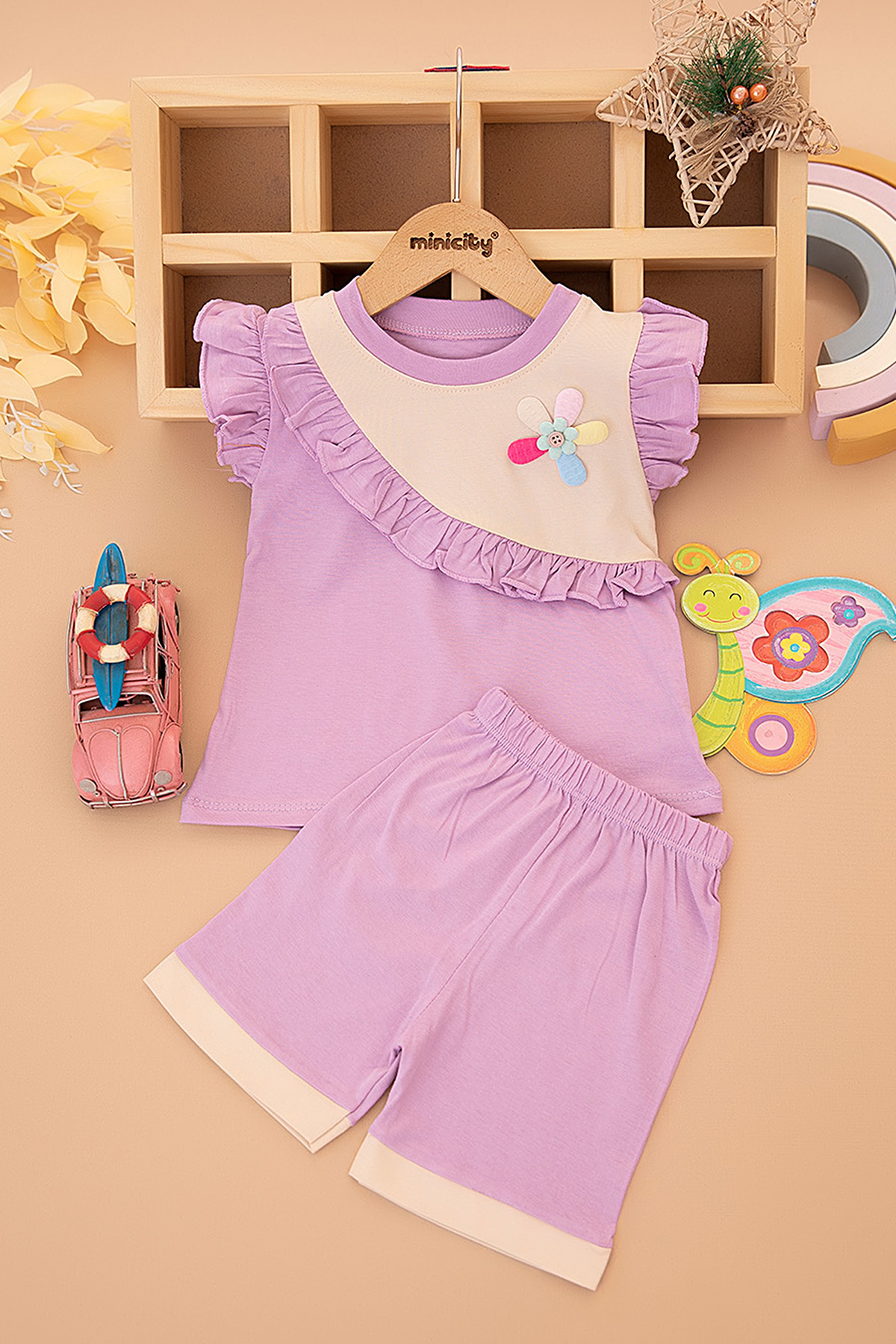 Kız Çocuk Broşlu Fırfırlı Şortlu Takım - 3026 (1-3 Yaş)