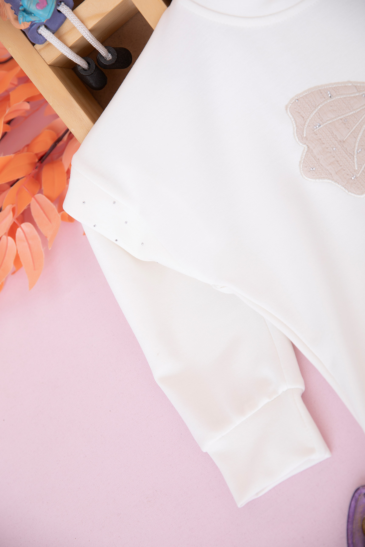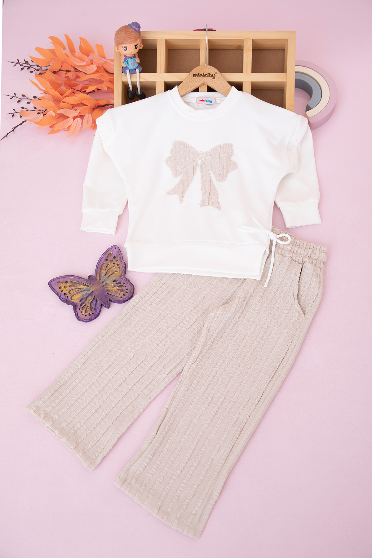 Kız Çocuk Bubble Kolu Fiyonk Nakışlı Takım - 5152 (4-11 Yaş)