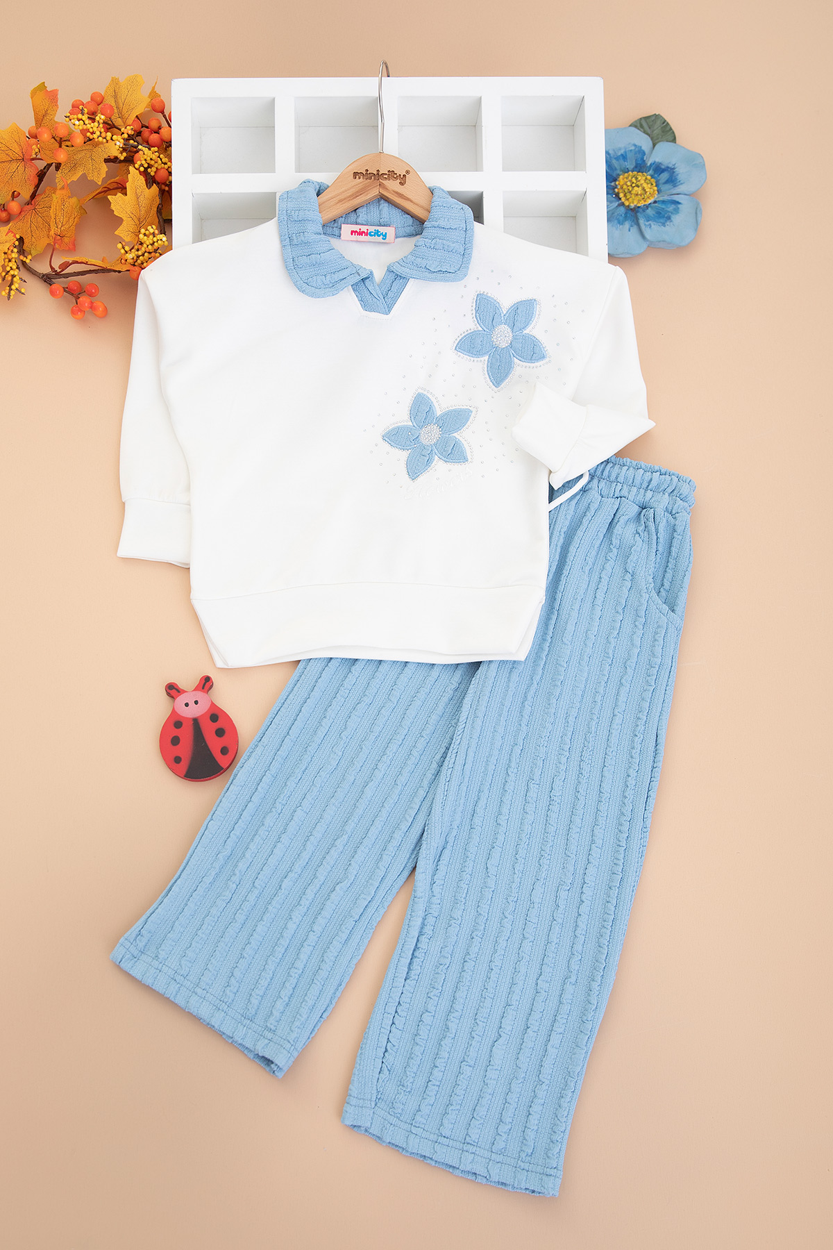 Kız Çocuk Bubble Yaka Çiçekli Takım - 5105 (4-11 Yaş)