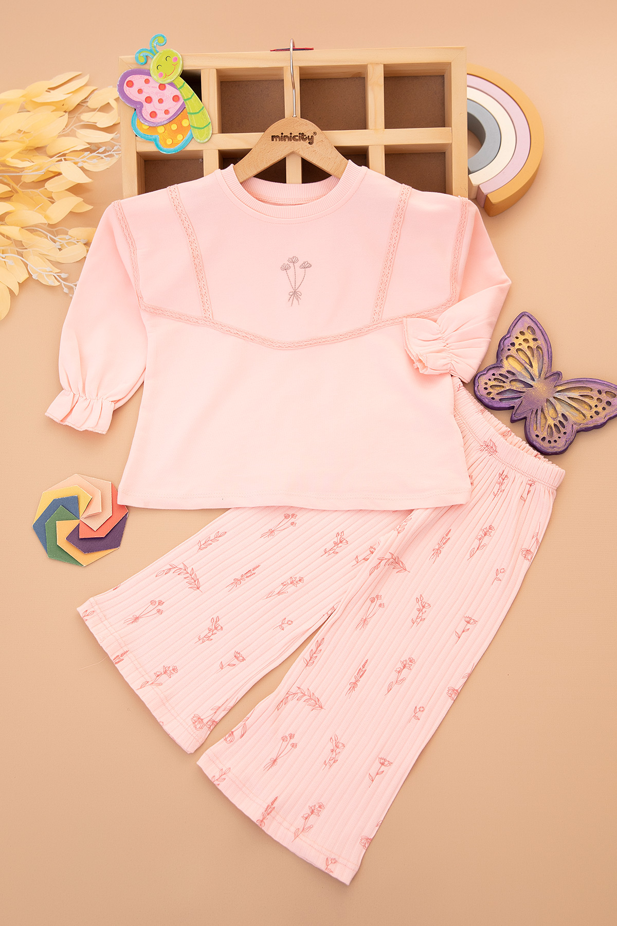 Kız Çocuk Buket Çiçek Nakışlı Brode Takım - 2615 (2-6 Yaş)