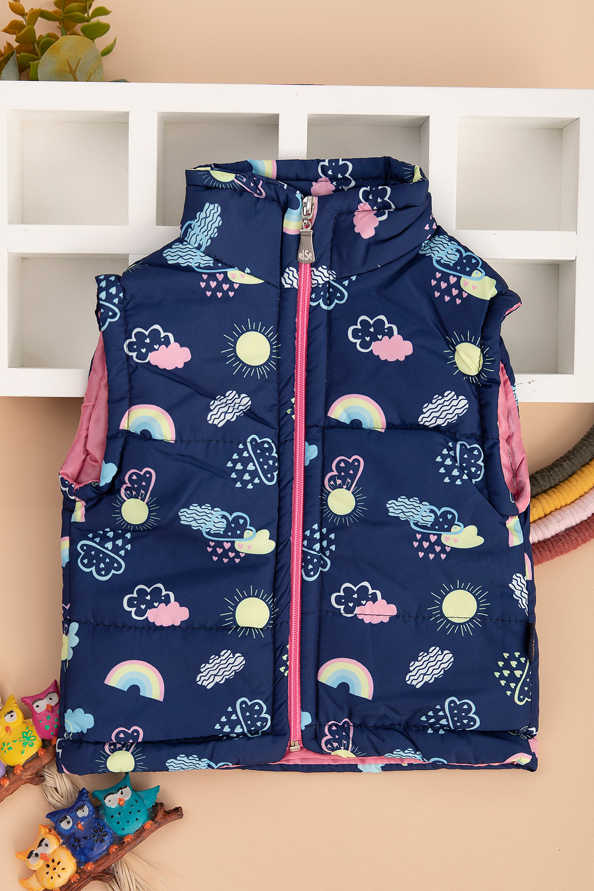 Kız Çocuk Bulut Baskılı Yelek - 2552 (1-3 Yaş)