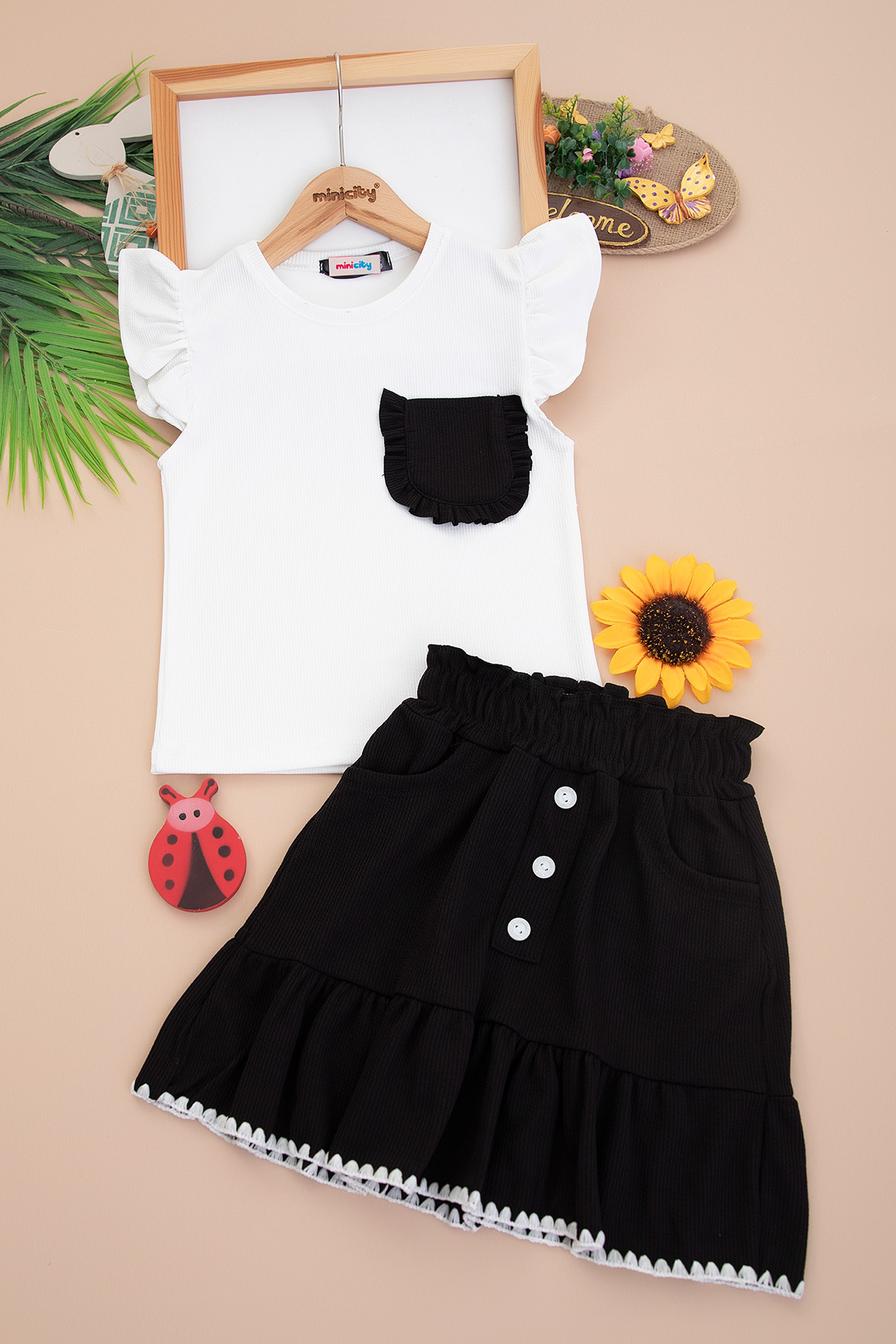 Kız Çocuk Burgu Badi Düğmeli Etek Takım - 1017 (6-10 Yaş)