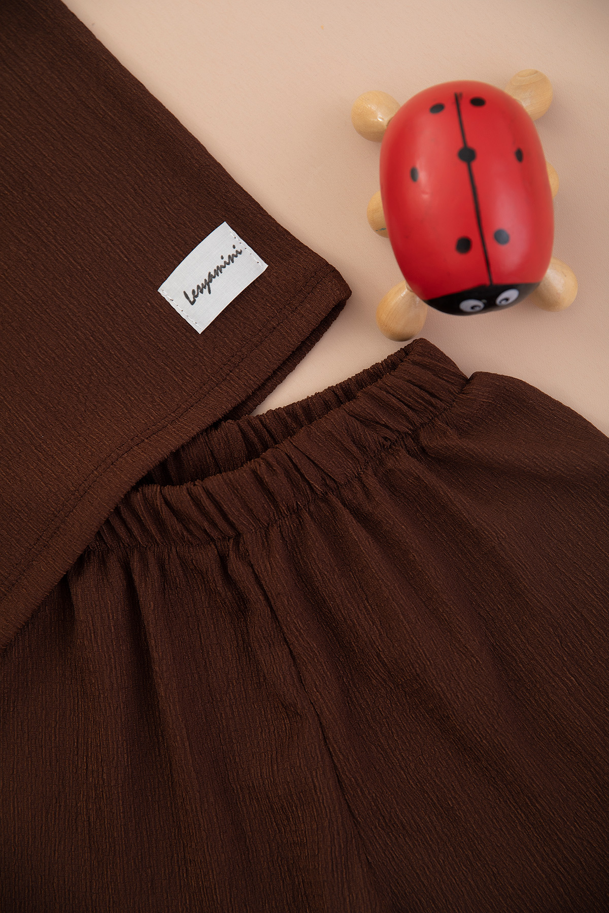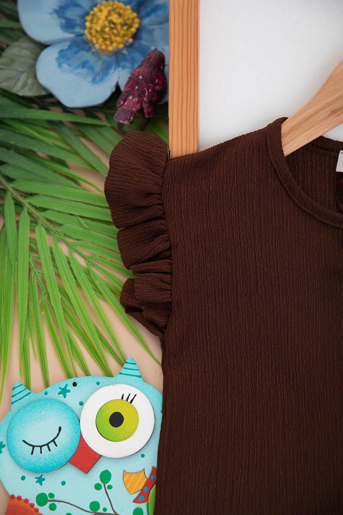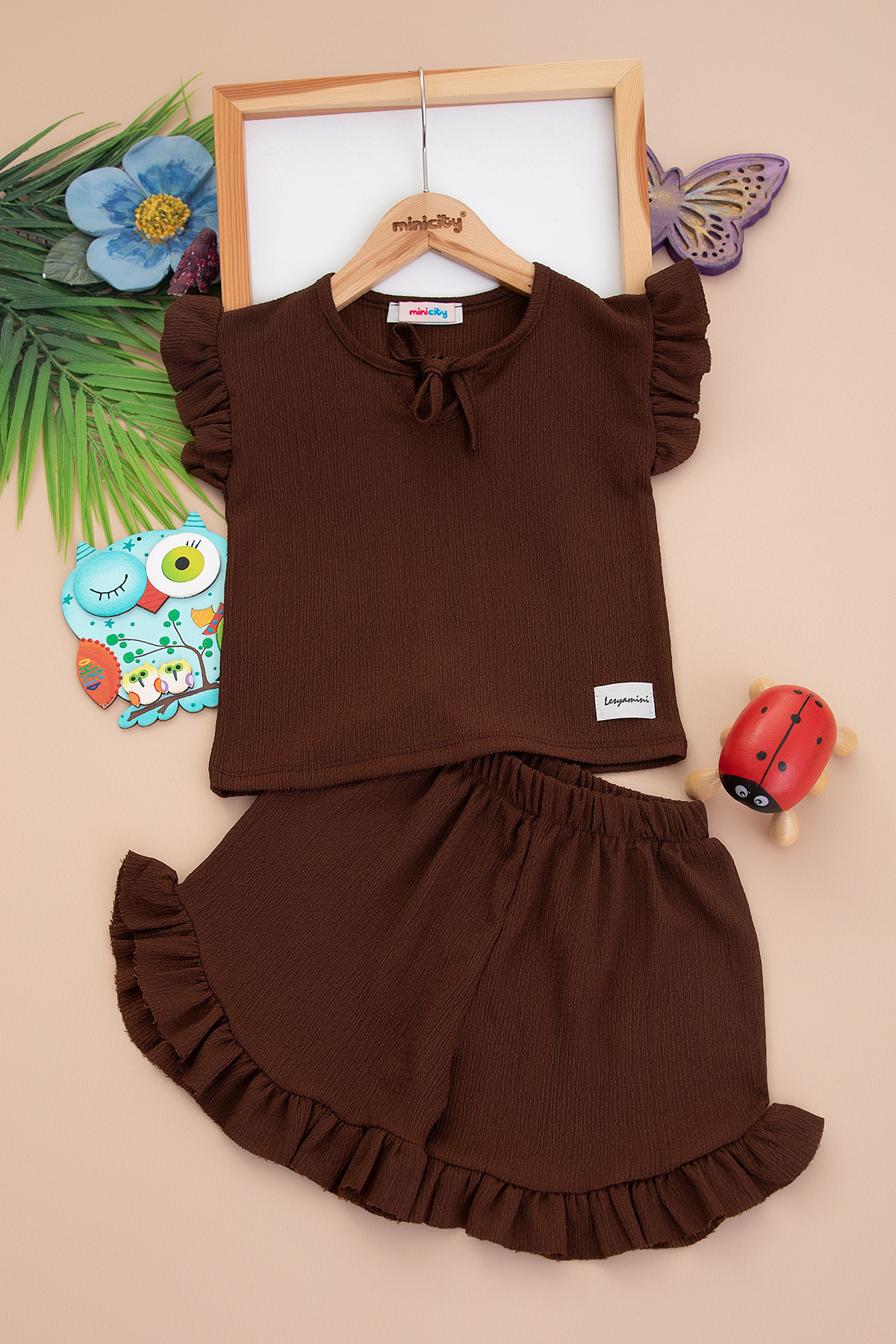 Kız Çocuk Bürümcük Fırfırlı Şortlu Takım - 2760 (3-12 Yaş)