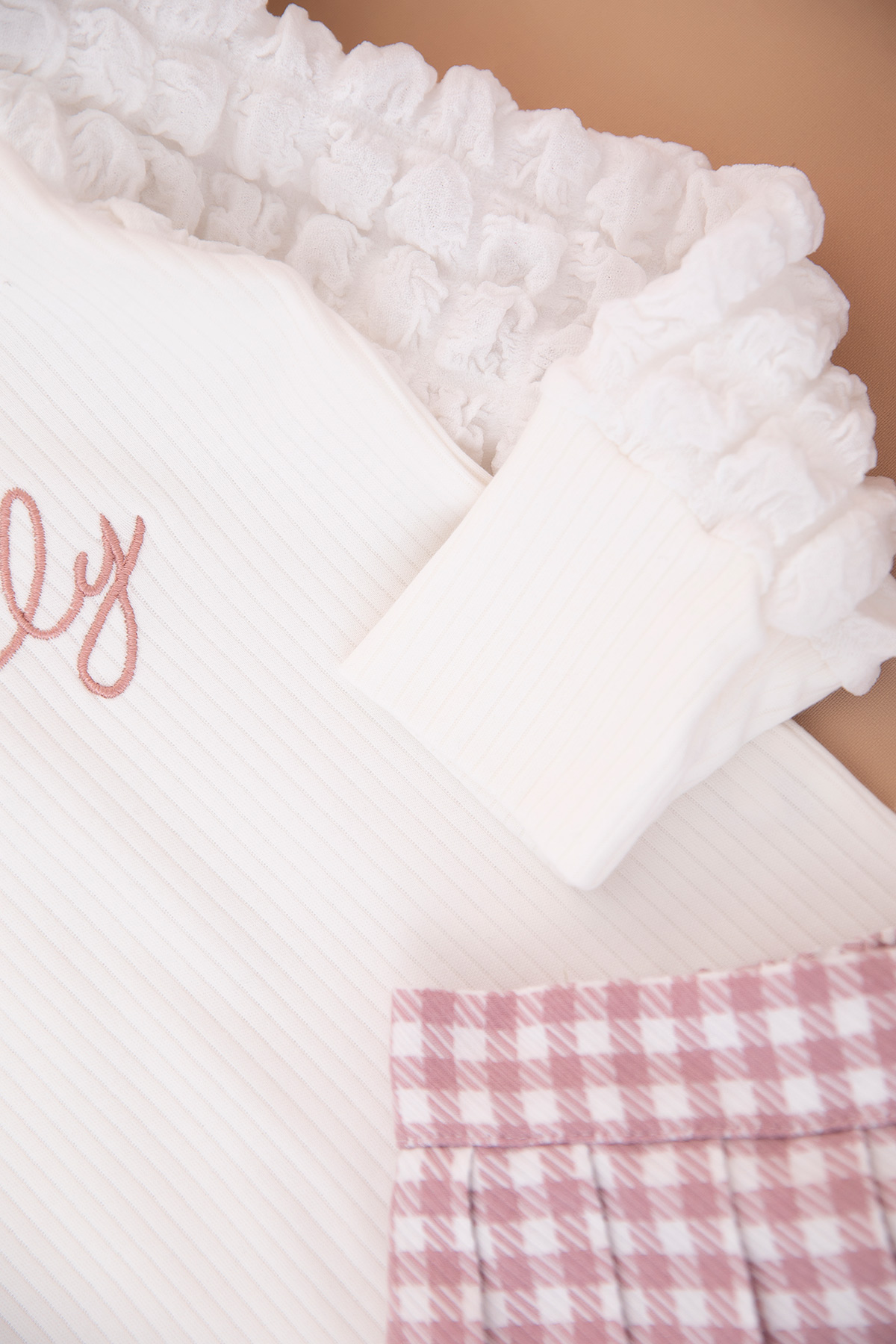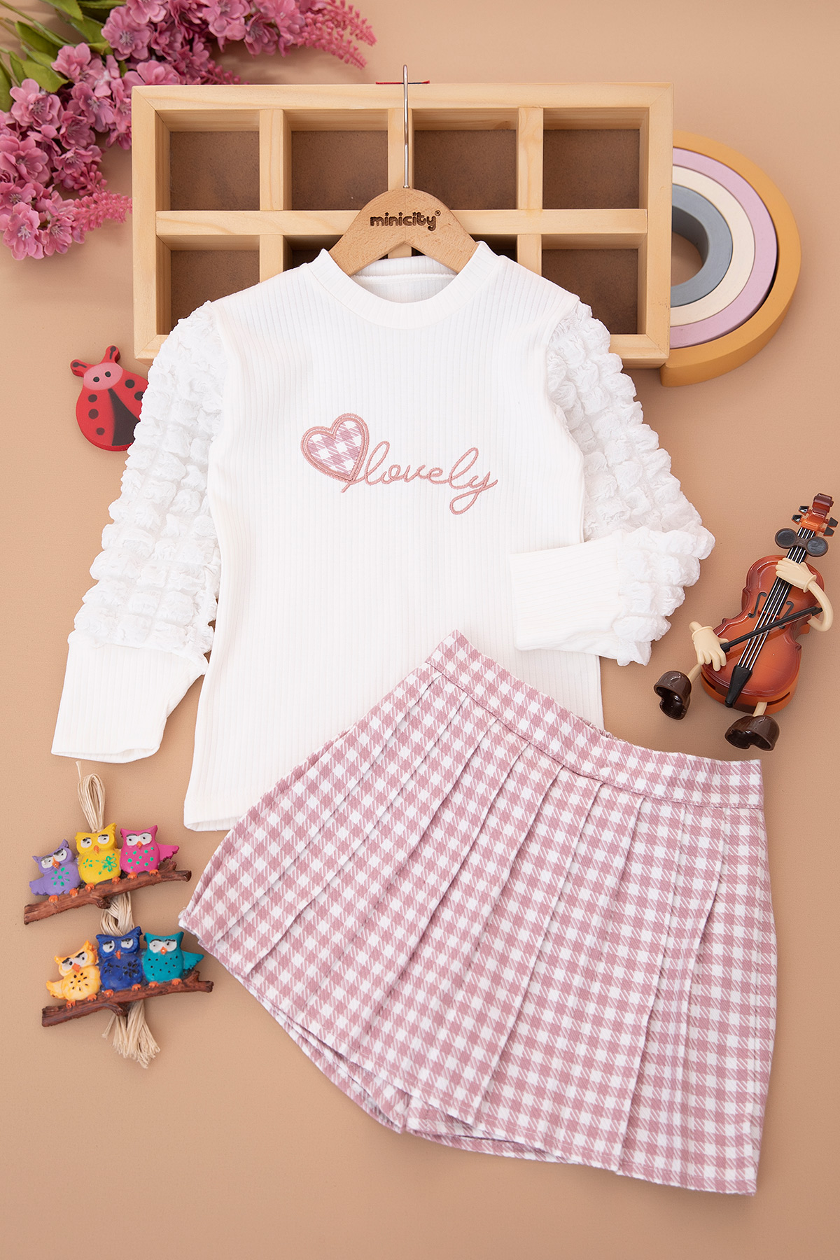 Kız Çocuk Bürümcük Kollu Ekose Etekli Takım - 2041 (6-9 Yaş)