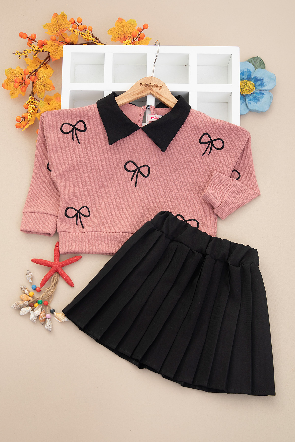 Kız Çocuk Bürümcük Nakışlı Pilise Etekli Takım - 14513 (4-8 Yaş)