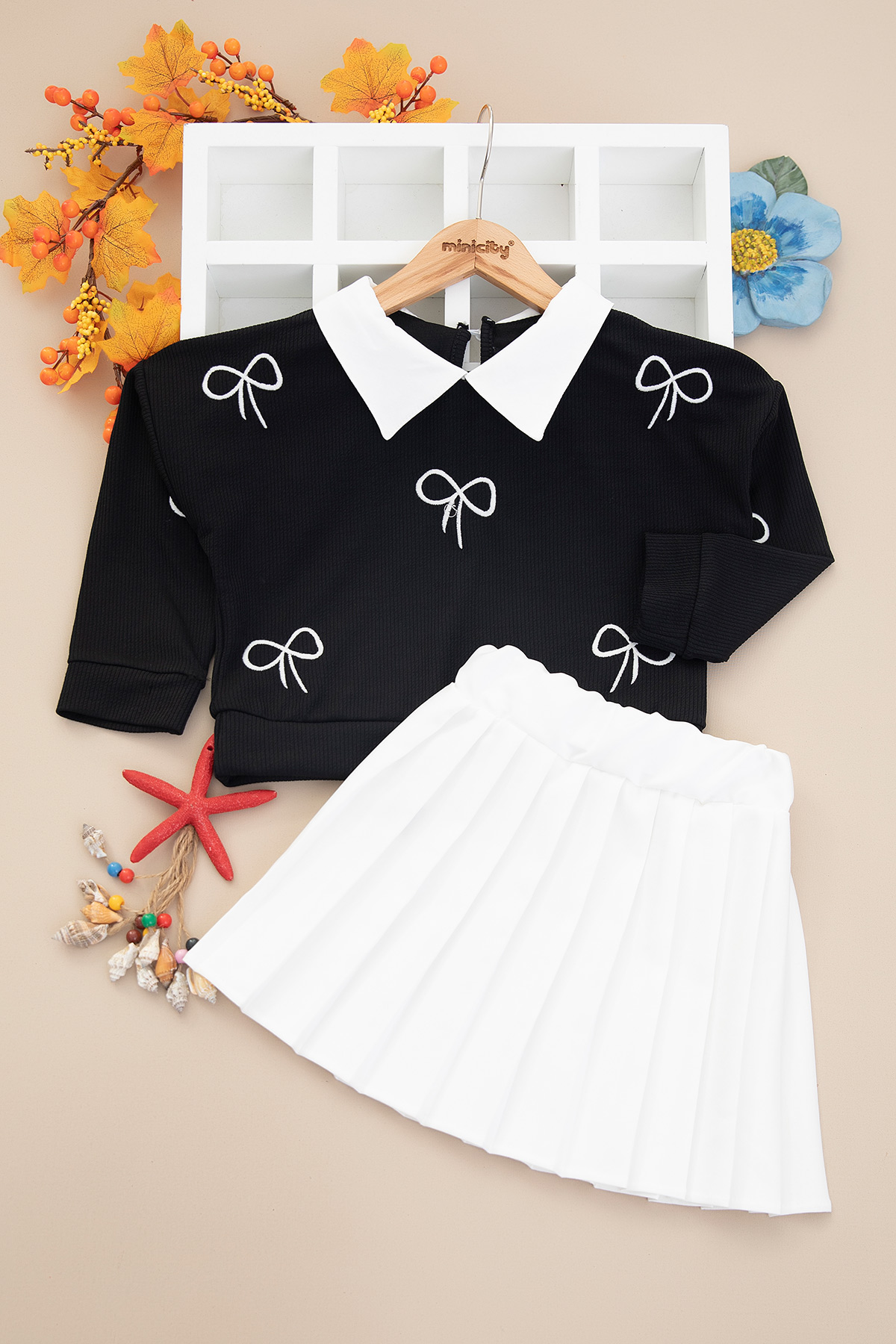 Kız Çocuk Bürümcük Nakışlı Pilise Etekli Takım - 14513 (4-8 Yaş)