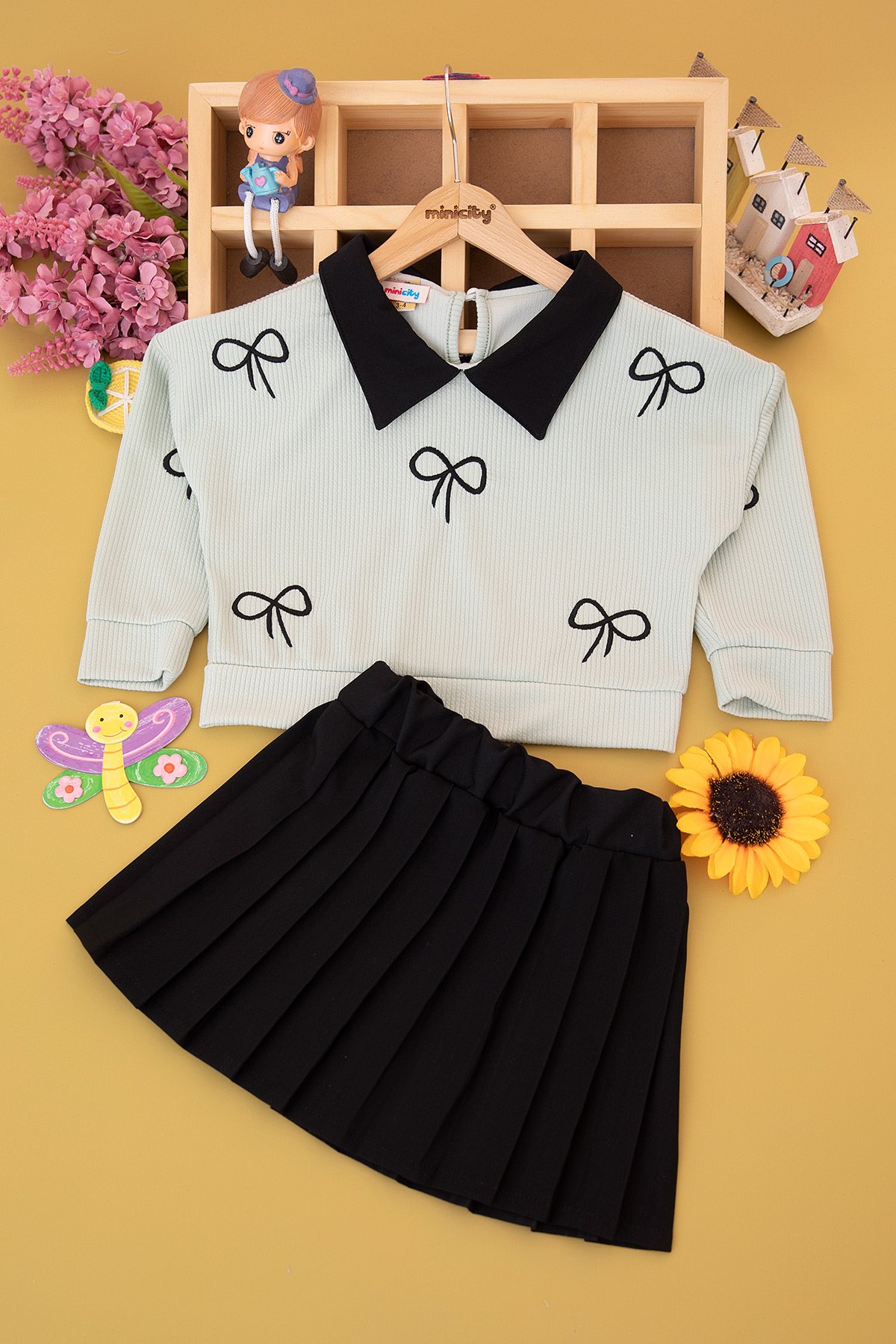 Kız Çocuk Bürümcük Nakışlı Pilise Etekli Takım - 14513 (4-8 Yaş)