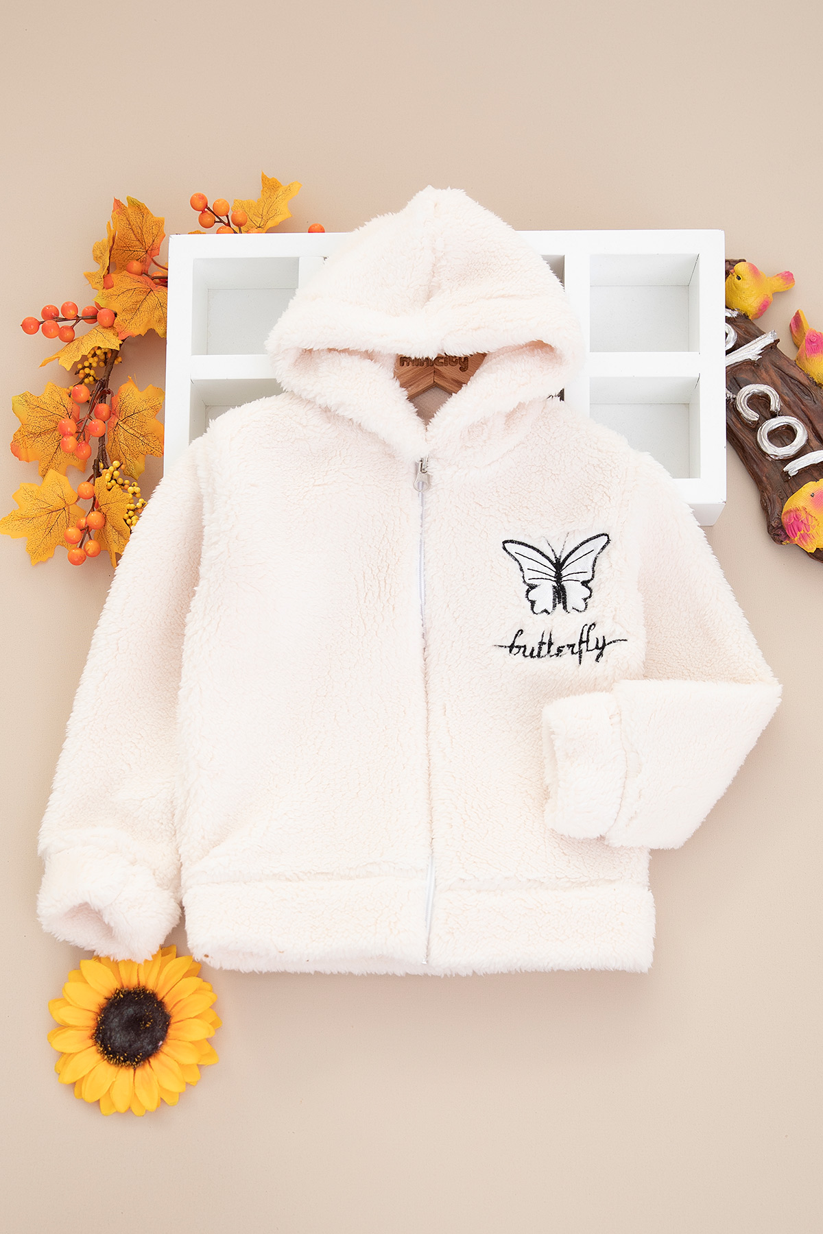 Kız Çocuk Butterfly Nakışlı Peluş Mont - 619119 (5-8 Yaş)