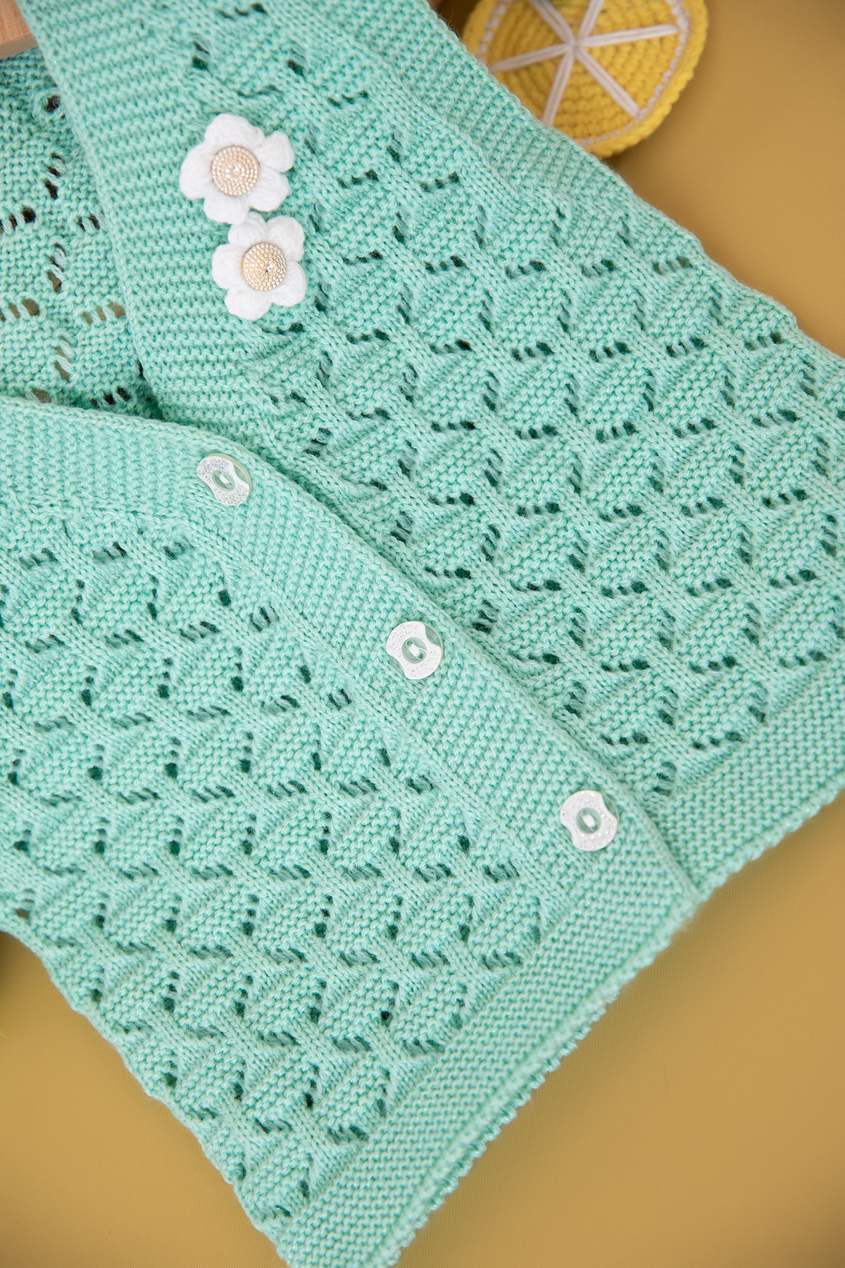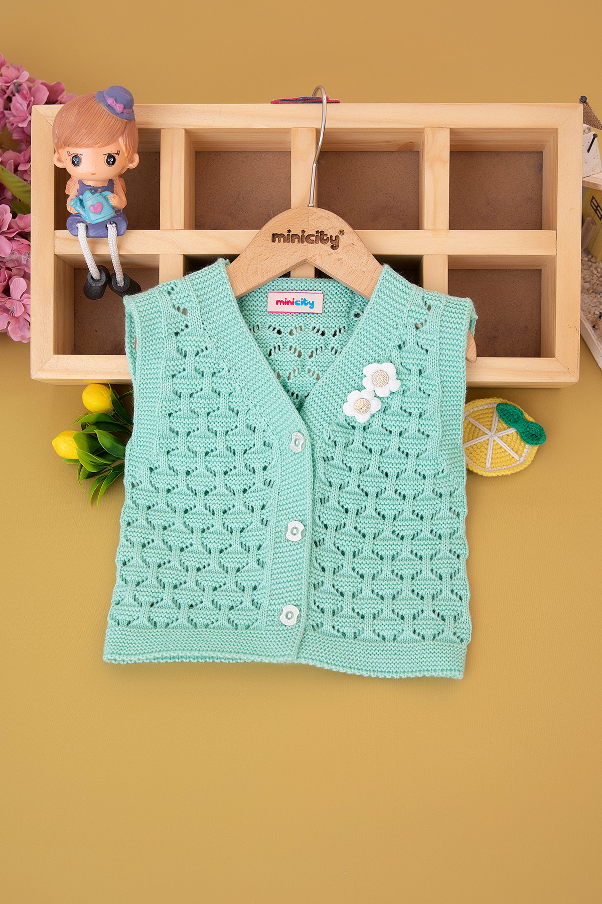 Kız Çocuk Büyük Düğmeli Nakışlı Triko Yelek