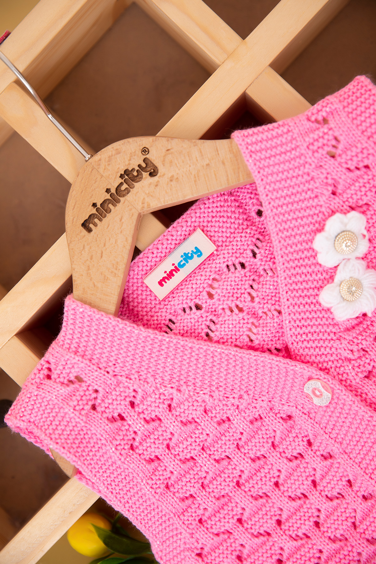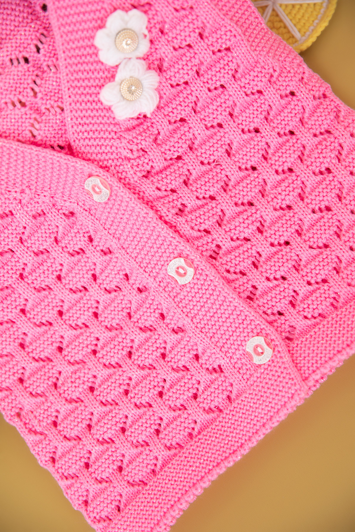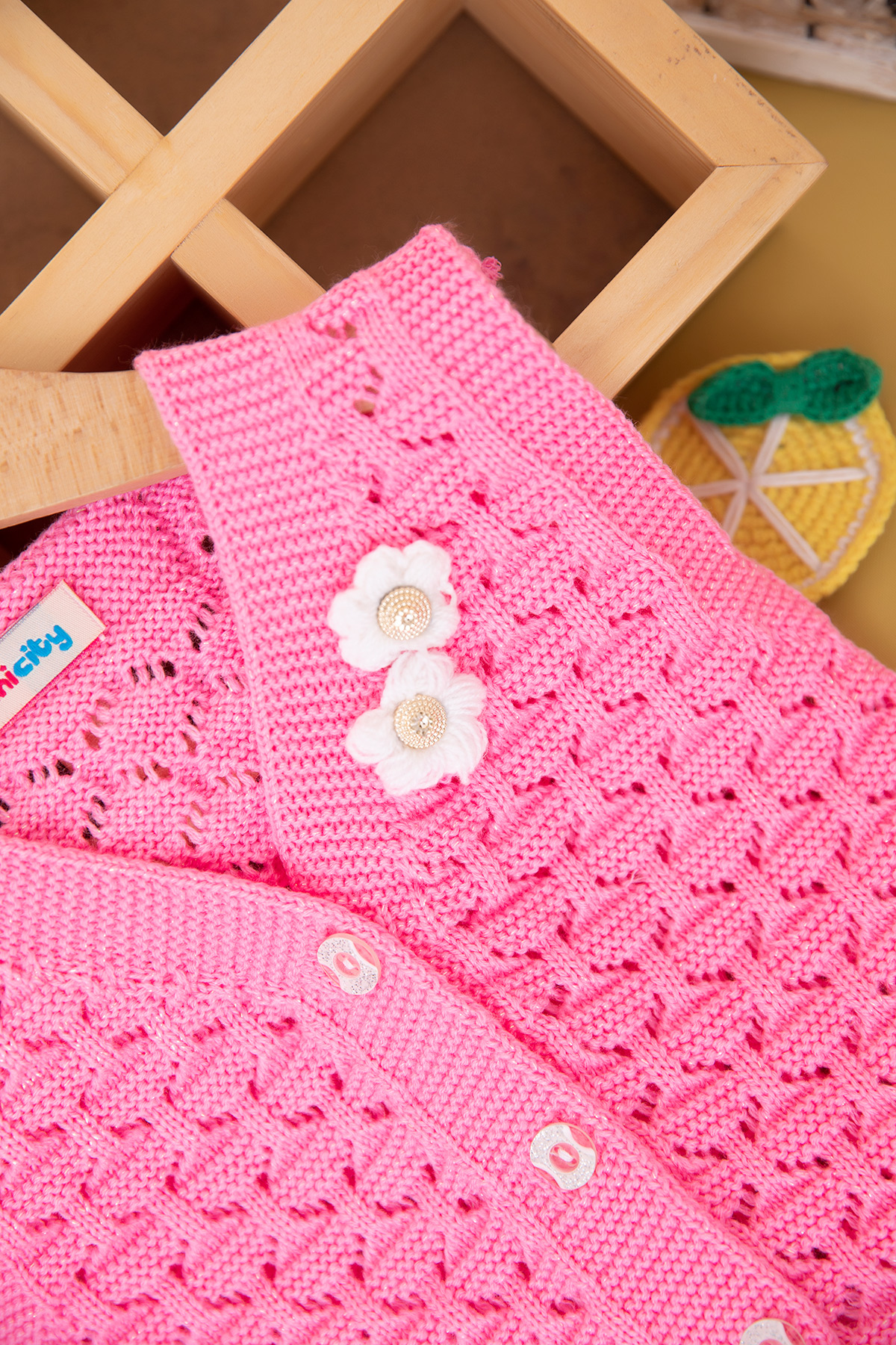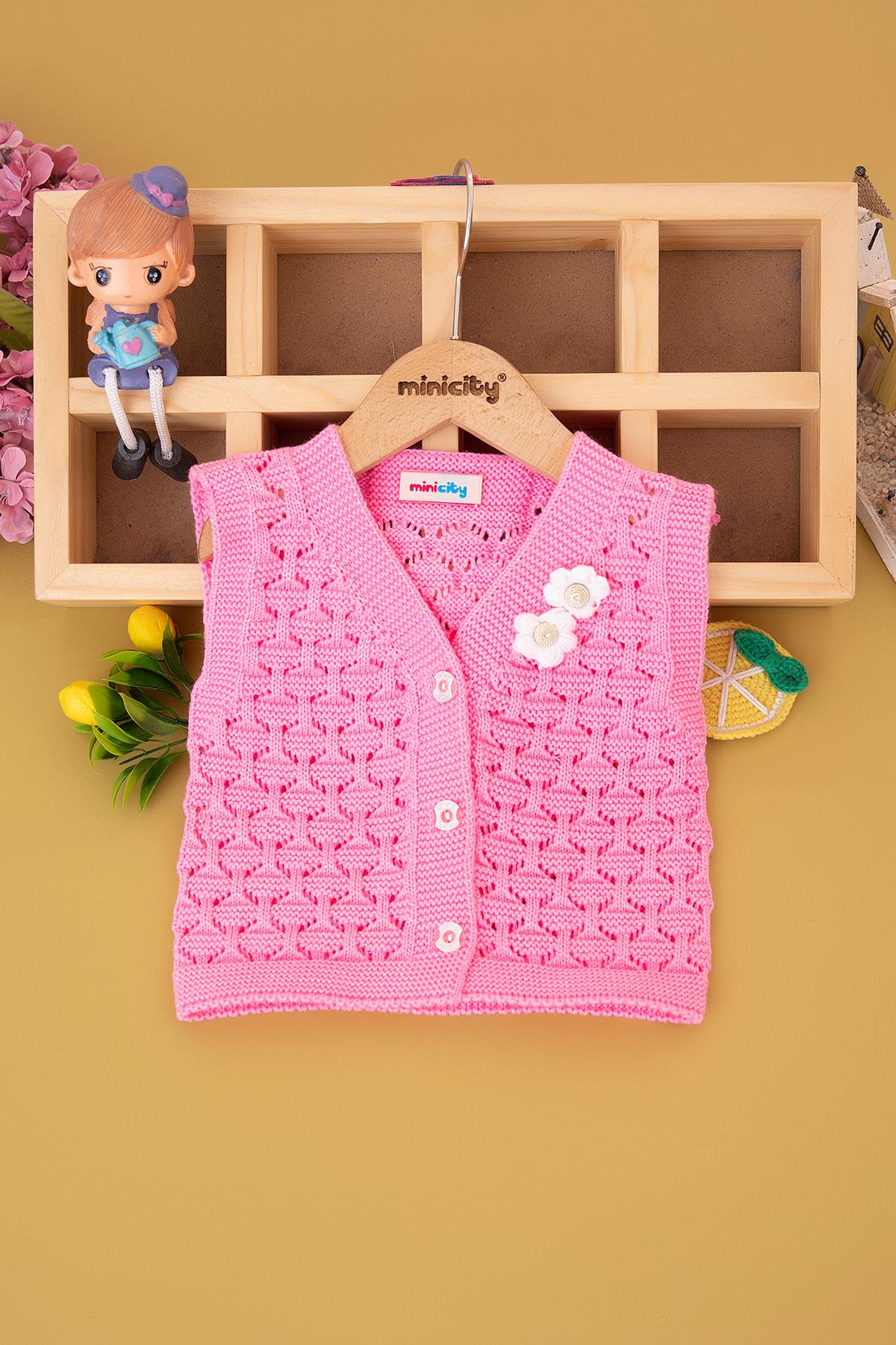 Kız Çocuk Büyük Düğmeli Nakışlı Triko Yelek