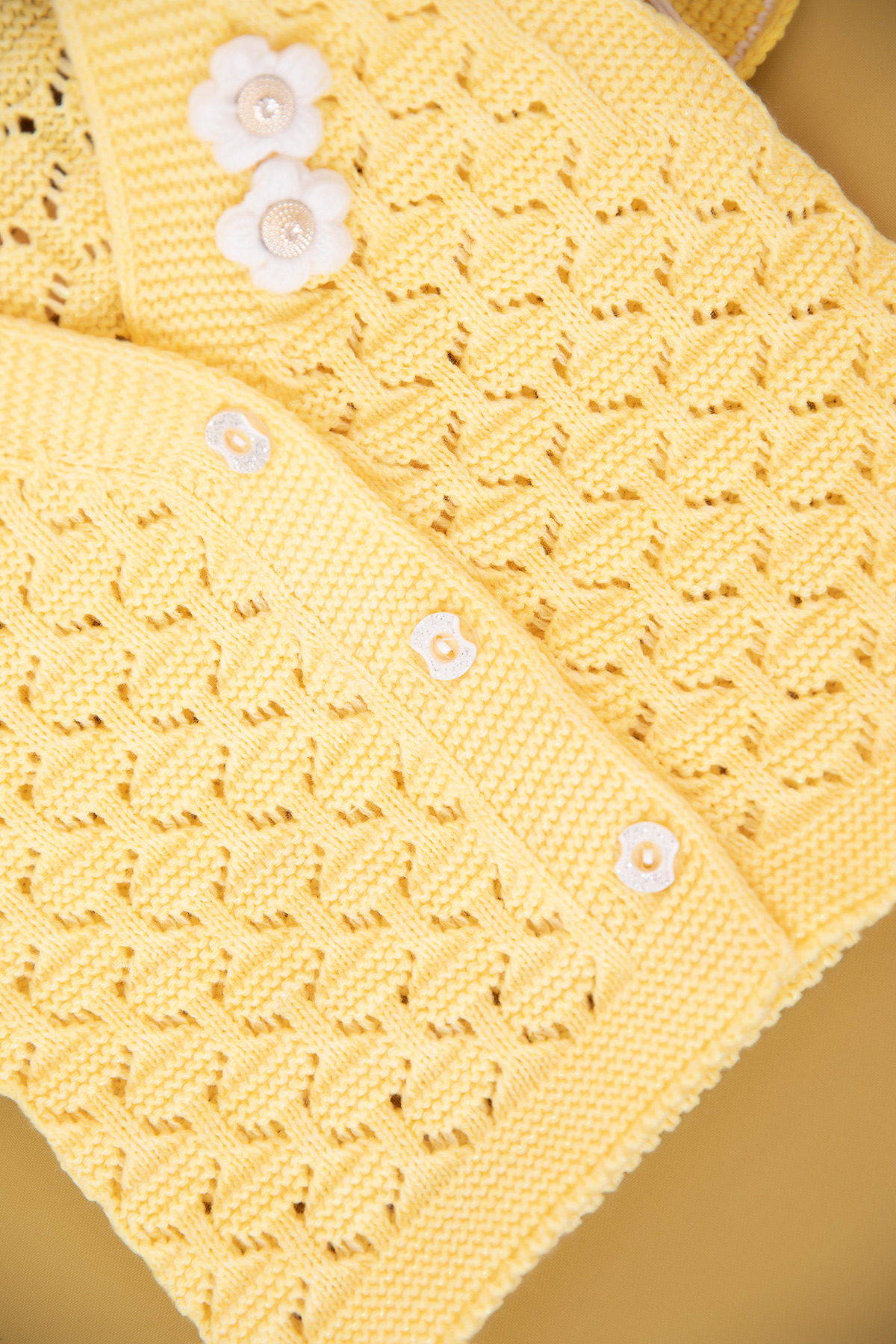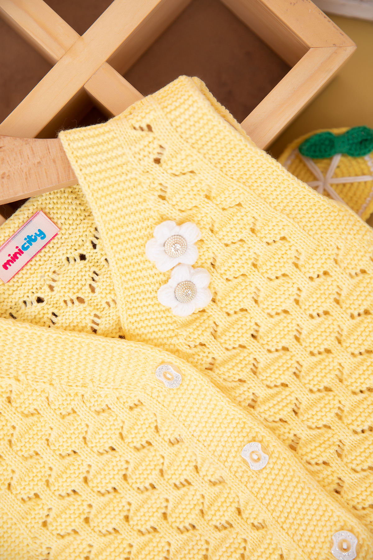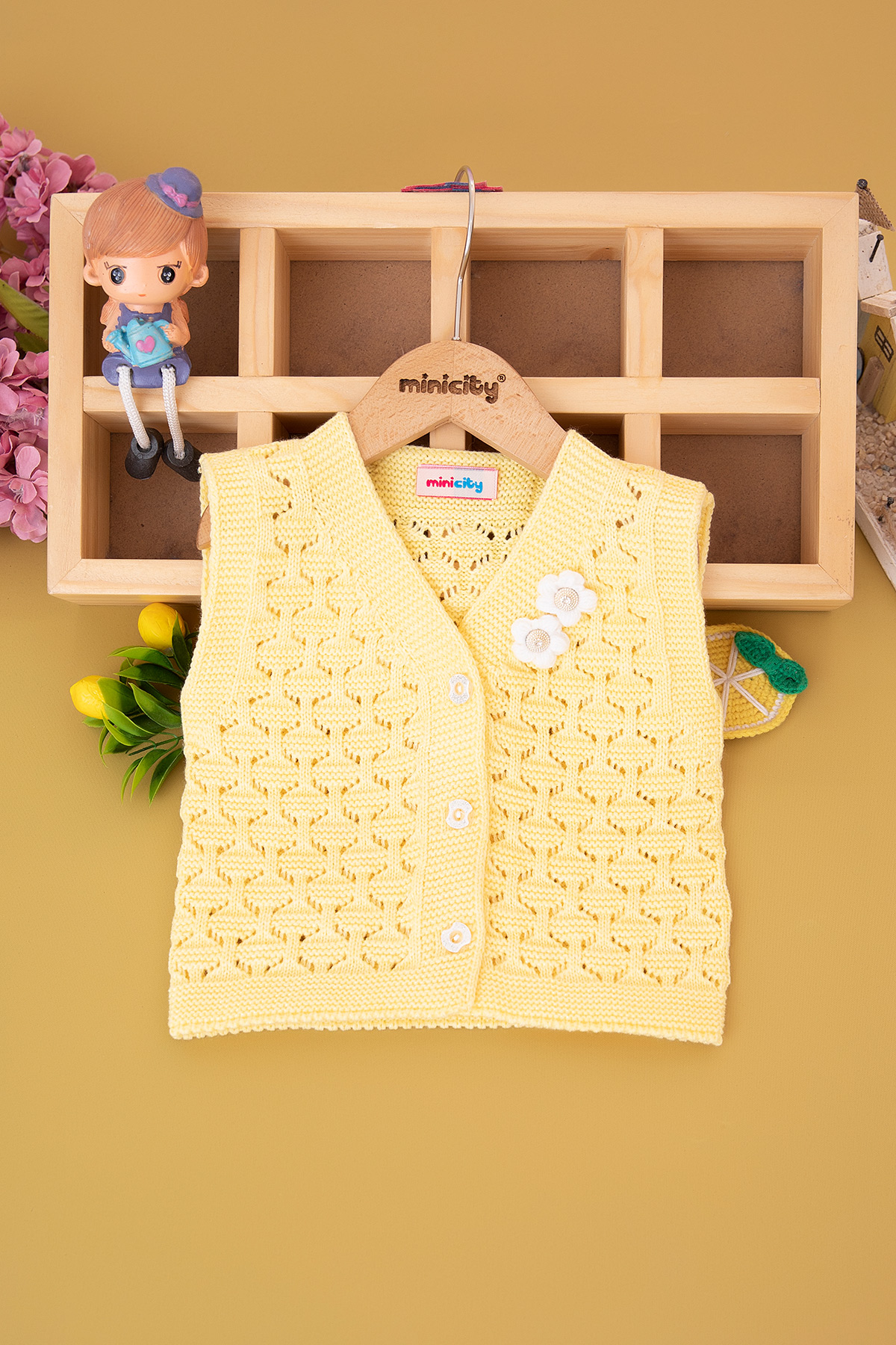 Kız Çocuk Büyük Düğmeli Nakışlı Triko Yelek