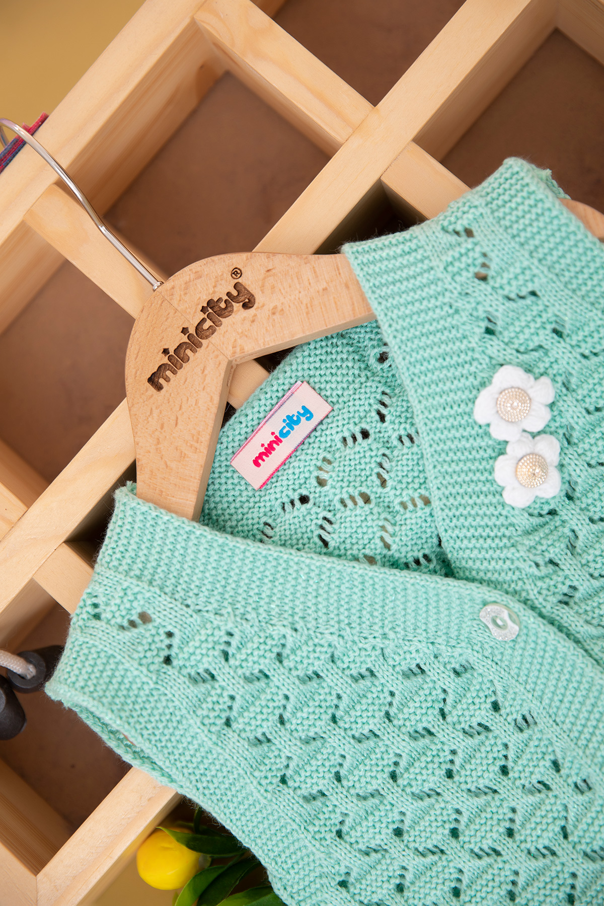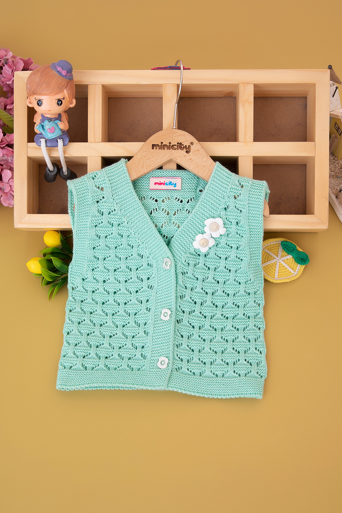 Kız Çocuk Büyük Düğmeli Nakışlı Triko Yelek