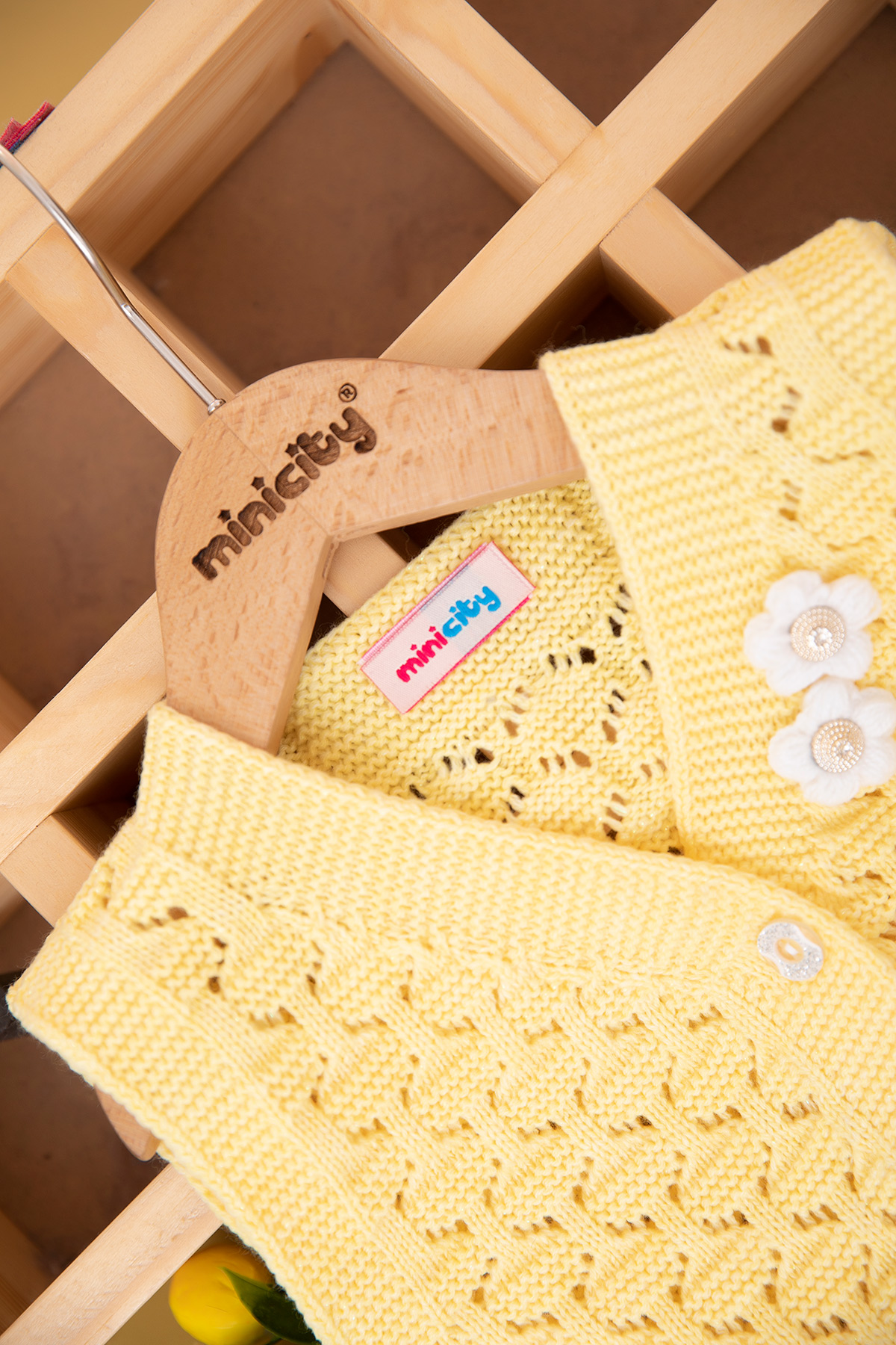 Kız Çocuk Büyük Düğmeli Nakışlı Triko Yelek