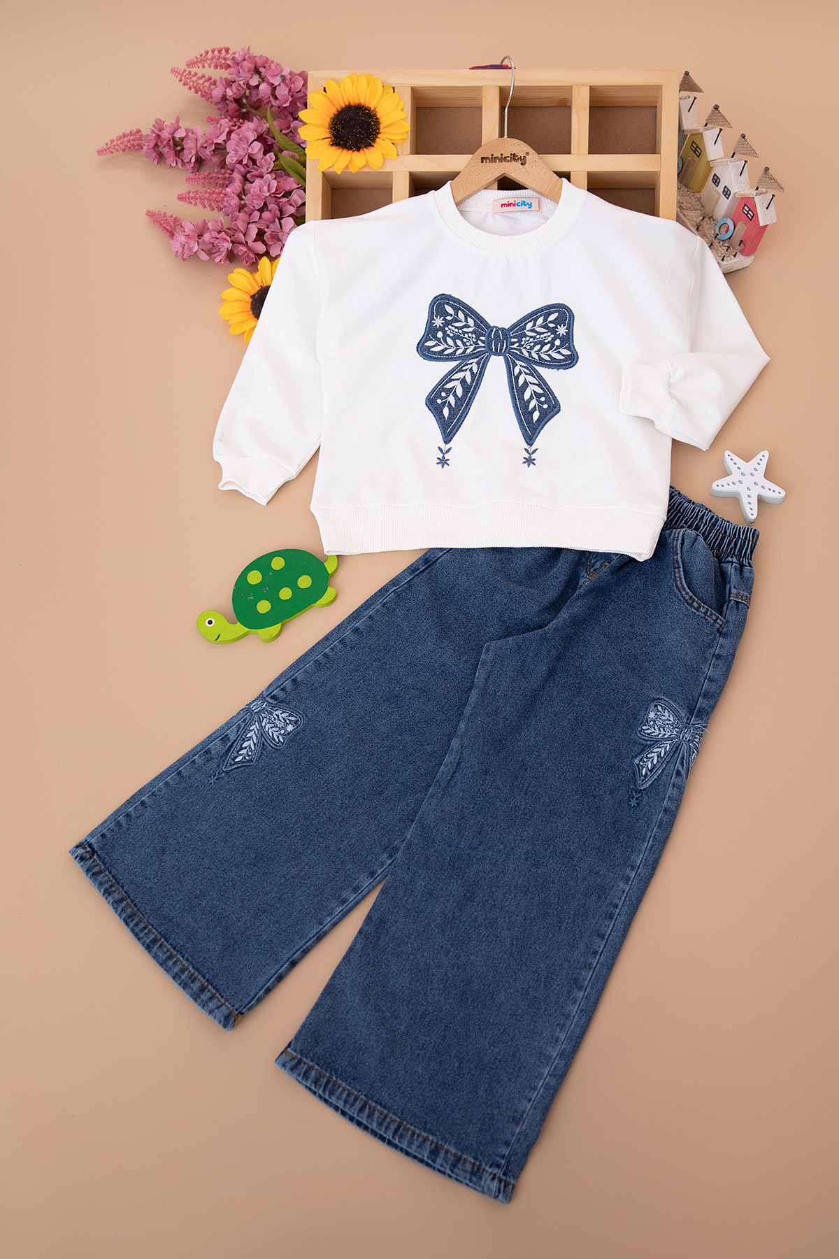 Kız Çocuk Büyük Fiyonk Pantolon Takım - 2665 (6-10 Yaş)