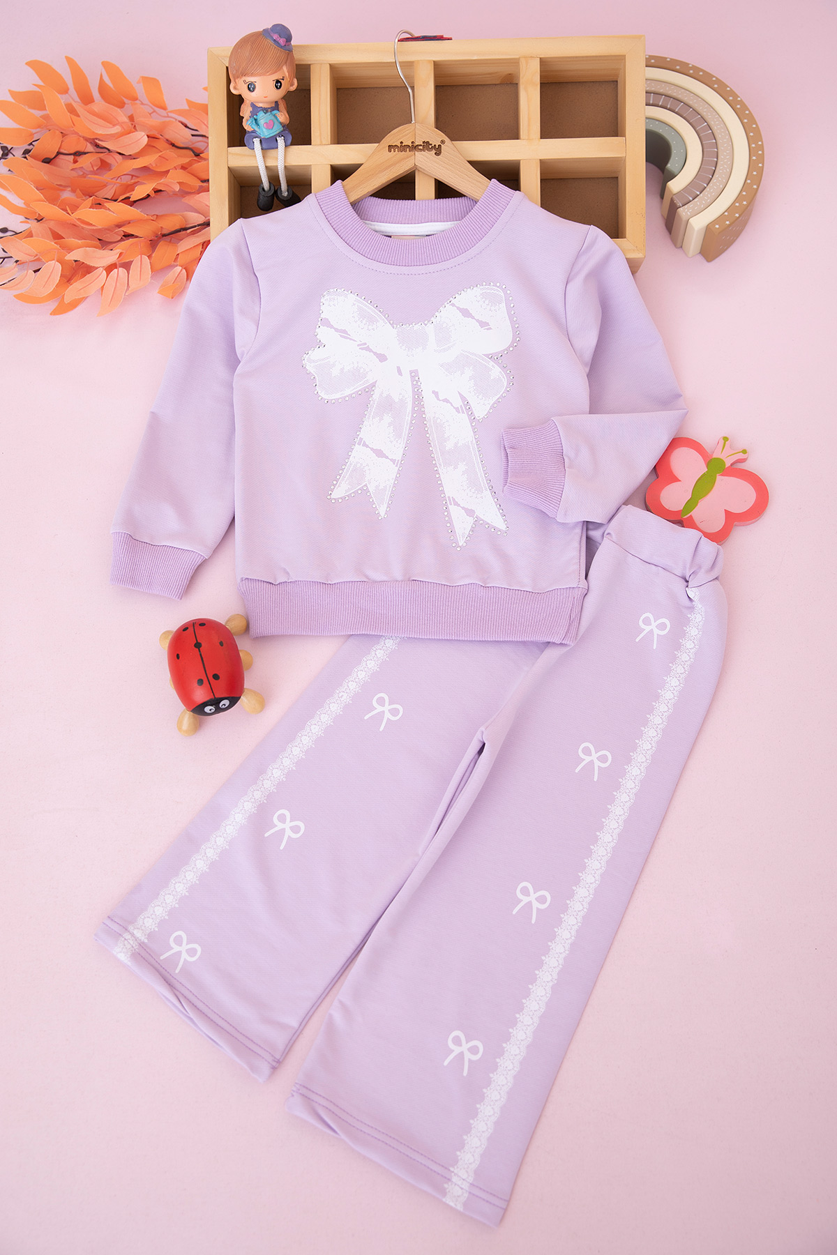 Kız Çocuk Büyük Fiyonk Taşlı Mevsimlik Takım (3-10 Yaş)