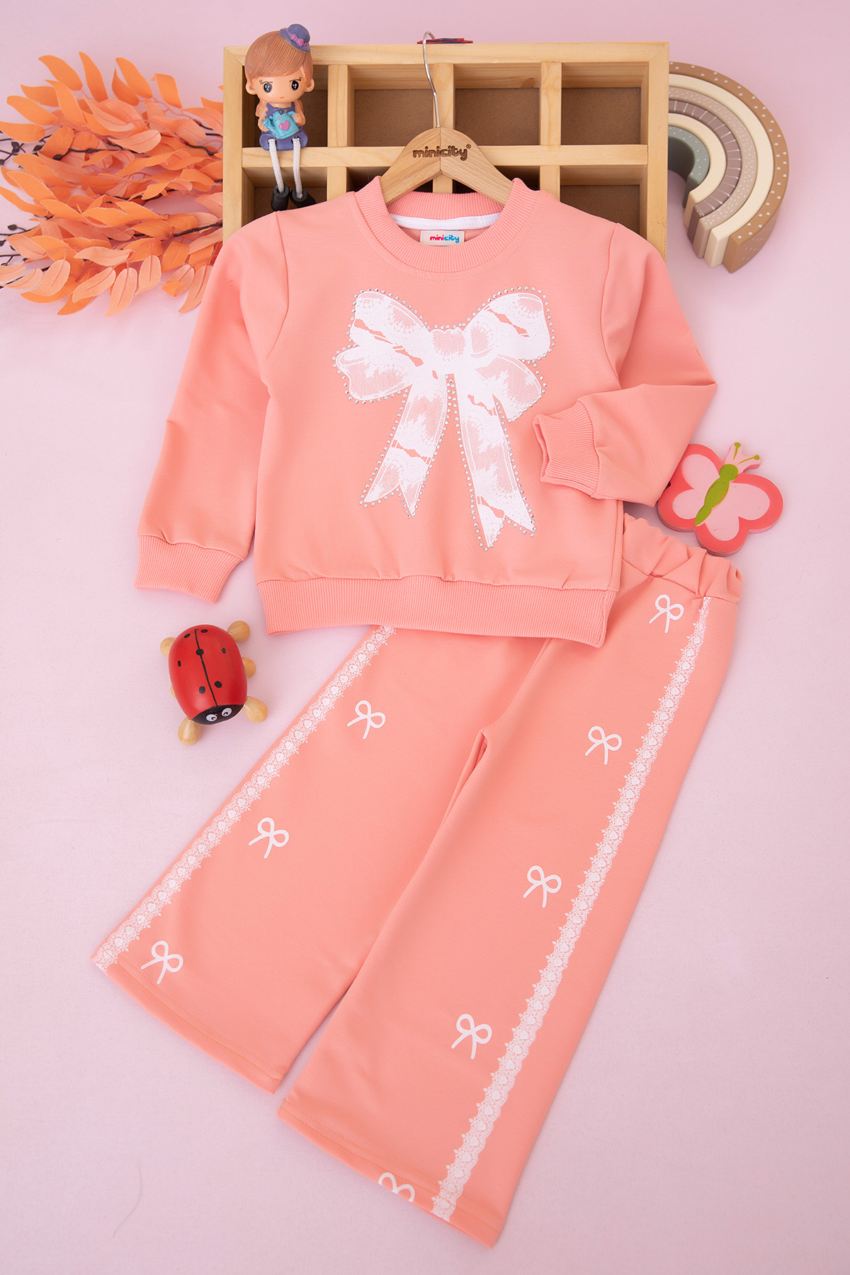 Kız Çocuk Büyük Fiyonk Taşlı Mevsimlik Takım (3-10 Yaş)