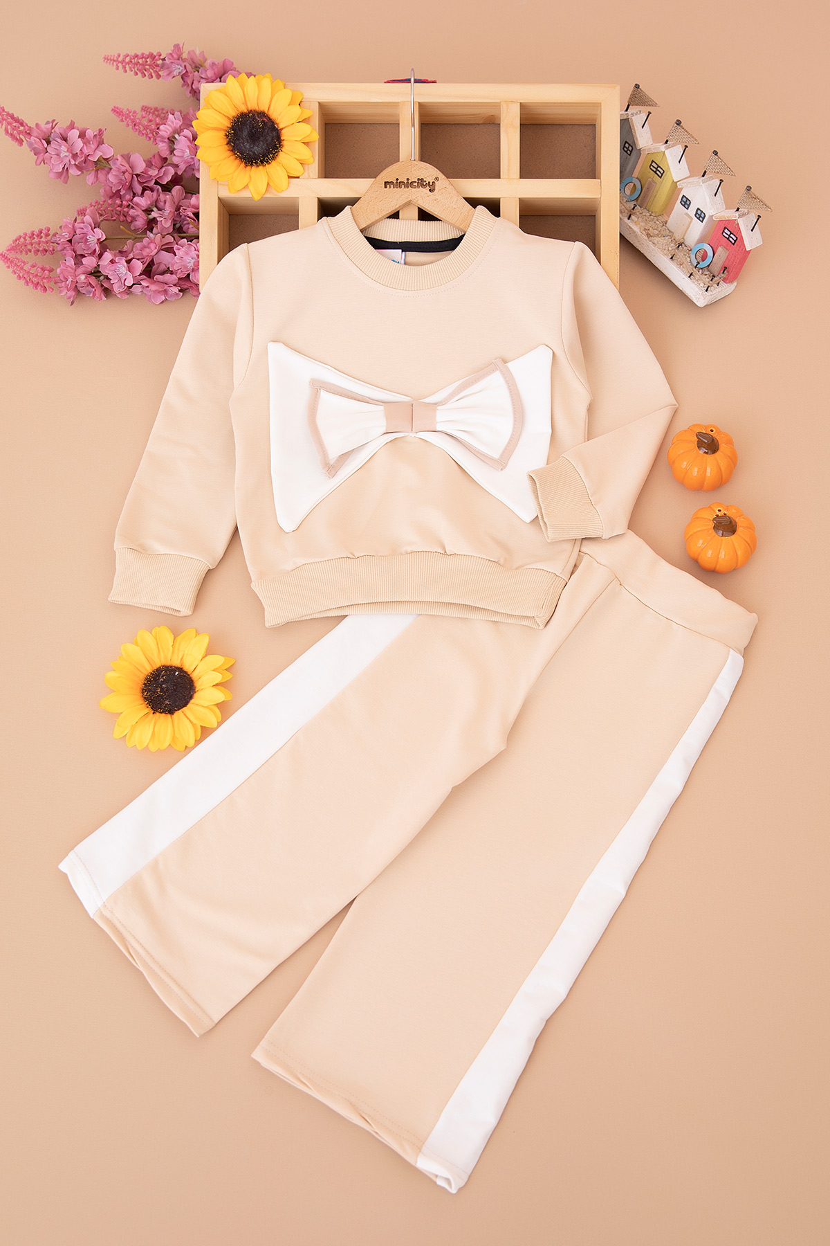 Kız Çocuk Büyük Fiyonklu Çift Renkli Takım (2-10 Yaş)